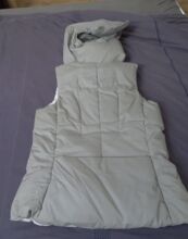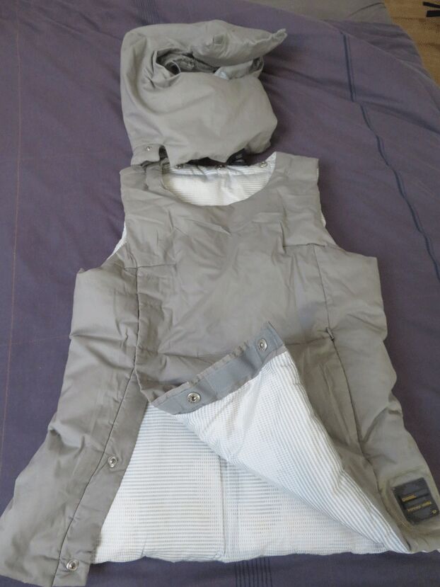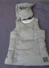 Toller Bodywarmer von DIESEL, reine Daune, ohne Federn, leicht und superwarm, ideal zum Ausreiten im Winter. Sie lässt sich vorne knöpfen und hat auch noch zusätzliche Taschen, auch zur Rückseite. Die Kapuze wird zur Innenseite durch Druckknöpfe befestigt - megawarm! Kann bei 30Grad in der Waschmaschine gewaschen werden. Ist als Gr. M etikettiert, habe sie mit einer Gr. S getragen, dann passt auch noch ein Wollpullover drunter. Guter getragener Zustand. Ca. Maße: Achsel zu Achsel: 46.5cm, Länge 61cm. Abholung oder Versand