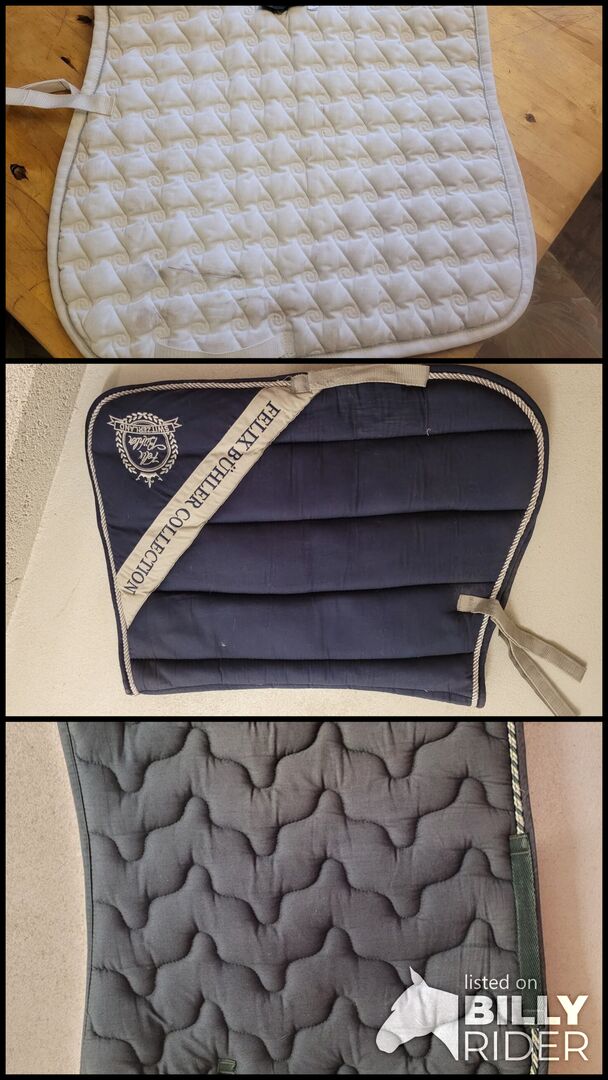 Diverse artiklar till försäljning till förmånliga priser - 3 sadelkuddar till salu, begagnade men i gott skick, har tvättats. 10fr per styck
