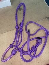 Diverse tillbehör - Hej på er alla, Jag säljer olika hästtillbehör. Dels en grimma i rosa/rosa/lila grimma i storlek full med matchande ledrep utan panikkrokar. Även en lila knuten grimma med matchande rep som tyvärr inte är avtagbar. Sedan damasker och fotsulor i hel och röda longeringsglasögon och 8 glittriga "gummi" för manen i rosa, som är mer lämpliga för tjockare flätor, t.ex. för utställningar. Priserna är också olika här.