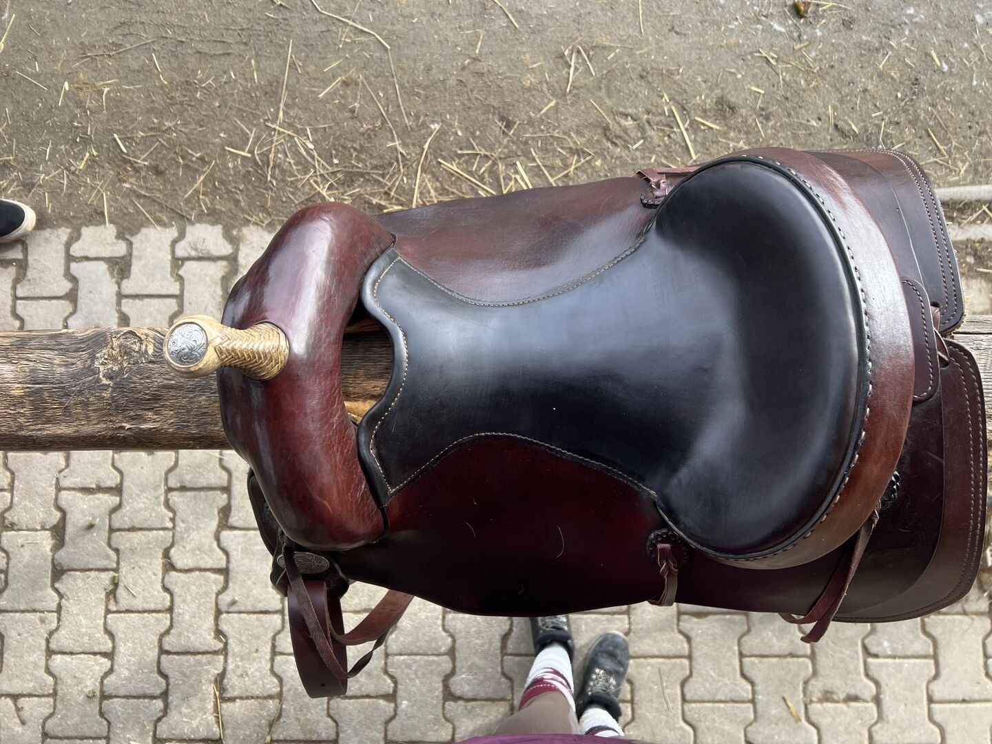 Double C Western Saddle 16 tum 2 sektion - Sadeln har alltid varit välskött, men tyvärr har jag inte längre någon häst som sadeln skulle passa på. Den har en 2-styckig kammare och en 16-styckig sadel och är mycket bekväm på längre sträckor. Priset uppskattades av sadelmakaren.