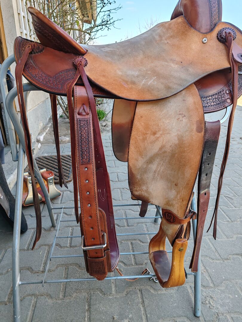 DP Vaquero XS 17 utan horn - Mycket bekväm 'Ladies-Wade' sadel till salu eftersom den inte längre passar mitt QH-sto. Måtten kan ses på bilderna. Jag har fått hornet professionellt bort eftersom det störde mig. Montering är möjlig i BAR-, MOL-, OHV-området för ett litet bidrag till resekostnader och eventuellt bortom. Frakt är möjlig mot en avgift, inte för rättegång.
