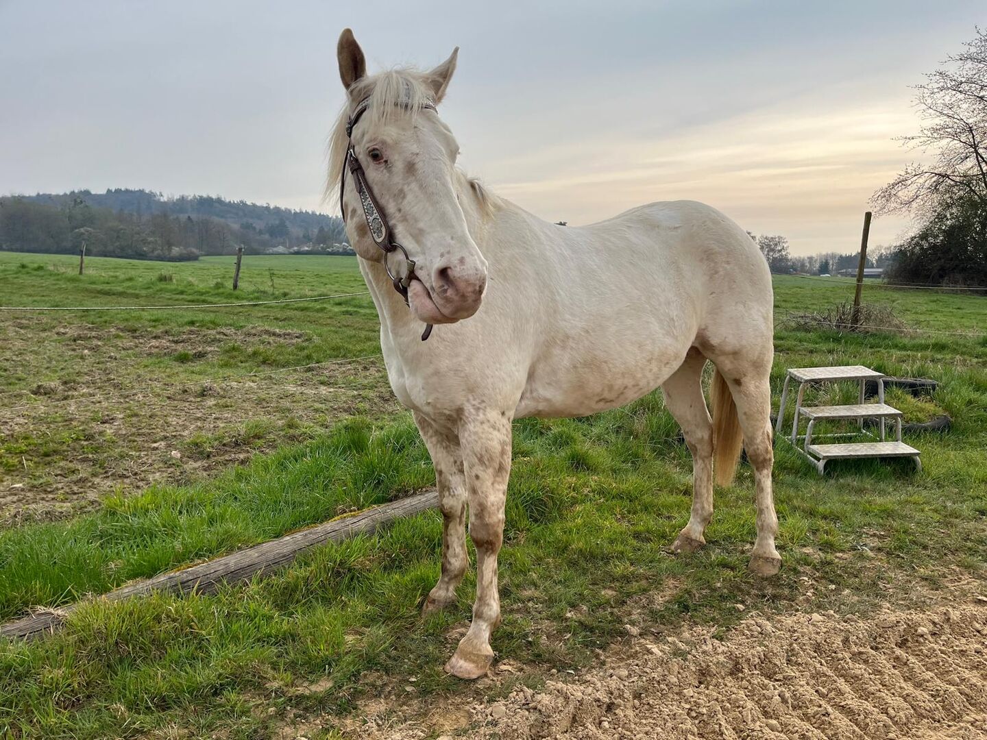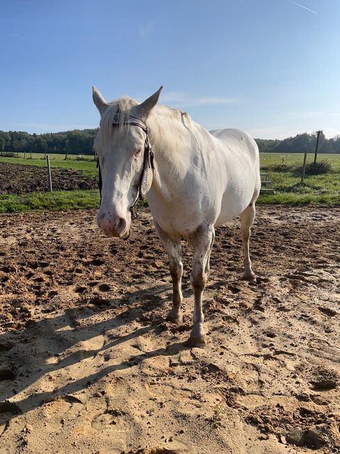 Dream Appaloosa med karaktär av guld letar efter sin människa - Plats: 66809 Nalbach FH Special Jasper är en vacker Appaloosa valack, född i oktober 2018, med en exceptionell Few-Spot-färg och en höjd på ca 154 cm. Han imponerar inte bara med sitt speciella utseende, utan också med sin korrekta konformation, en solid, stark grund och ett kompakt och välmusklat utseende med starka ben. Valacken har bara hovar, är frisk och har aldrig haft några sjukdomar. Han är 5-panel n/n testad genom sina föräldrar. Han är mycket bekant med veterinären och hovslagaren, liksom regelbunden avmaskning. Jasper är bekant med både öppet stall och boxuppstallning och har vuxit upp i en blandad besättning. Han är mycket okomplicerad i vardagen och är lätt att hantera. Hans tillgivna karaktär är särskilt anmärkningsvärd. Valacken är mycket människokär, lugn, väluppfostrad och jämn i humöret. Han strävar alltid efter att göra allt rätt, lär sig snabbt och har ett trevligt och balanserat temperament. Jasper är pålitlig under sadeln och imponerar med sina mjuka, behagliga gångarter. Han går bra på egen hand i hagen och är därför idealisk för nybörjare och de som återvänder till ridning. Jasper har en gedigen westernutbildning, men har ännu inte visats på tävlingar. Hans goda stamtavla och hans "karaktär av guld" gör honom till en fantastisk fritidspartner för många trevliga och avslappnade timmar i sadeln. AphC-papper finns naturligtvis tillgängliga.
