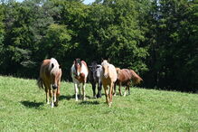 Dream Palomino PRE sto - Muriel MF är ett Pura Raza Espanola Palomino-sto med fullt ANCCE-papper i barocktyp stående med tre enastående gångarter. Jag tror att hon kommer att vara cirka 162-165 cm lång. Hon föddes den 20.03.2024 och är en ung dam med hög kvalitet, ädel och graciös med mycket förmåga och god upprätthet. Båda föräldrarna har en mycket bra och korrekt gångart, vilket också har kommit fram hos Muriel. Fadern har ett licensindex på 104,92. Hennes mor och hennes gammelfaster kan besiktigas på plats. Muriel kan stanna hos oss för vidare avel. Hon har regelbundet avmaskats, vaccinerats och visats upp för hovslagaren. Hon vet hur man kör släpvagn och gör det ganska bra. Hon känner också andra lantbruksdjur och barn. Hon har tillbringat sommaren utomhus med nötkreatur och andra hästar.