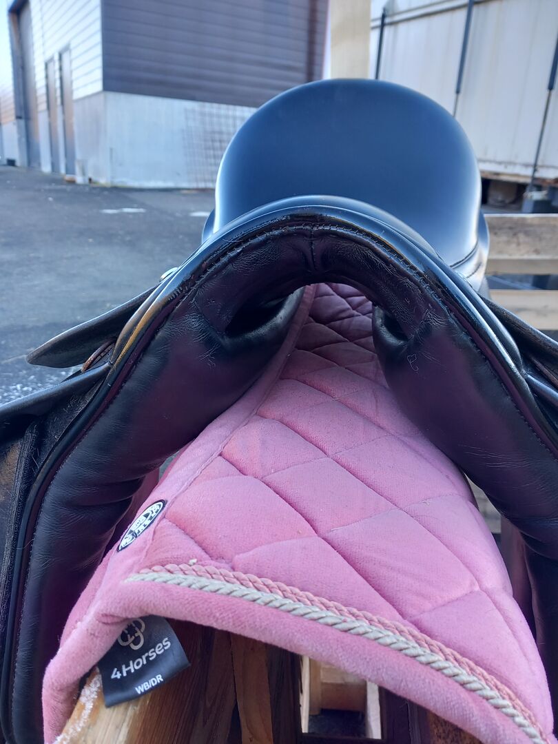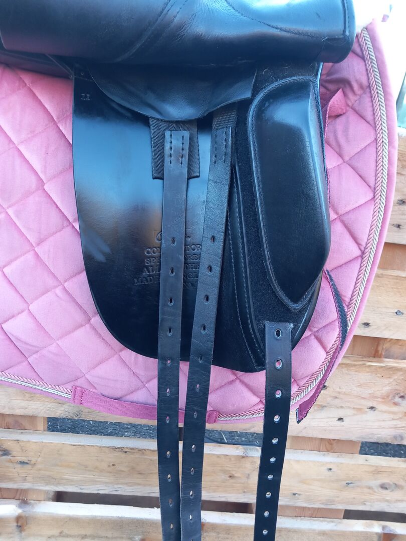 - 16,5 tum - har 3 gördelremmar - 1:a remmen förhindrar att sadelgjorden glider framåt om sadelgjorden är för djup eller magen är för liten (kan enkelt tas bort igen) - Spegel i lack - Framsida och baksida i lack - Flik med kardborreband - Nystoppad med original county-ull - Wxw lämplig för bredare ponnyer eller hästar - små tecken på slitage