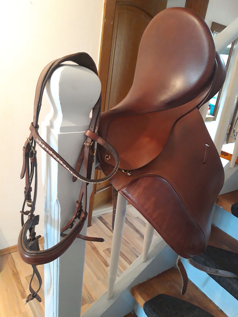 Dressyrsadel - Säljer en brun Busse dressyrsadel "Bonheur", med en sits på 17,5". Magsäcksbredden är som visas på bilderna, axelbredden är också som visas på bilderna. En träns i matchande färg kan köpas för en extra kostnad. Om du har ytterligare frågor kan du kontakta mig personligen eller via WhatsApp.