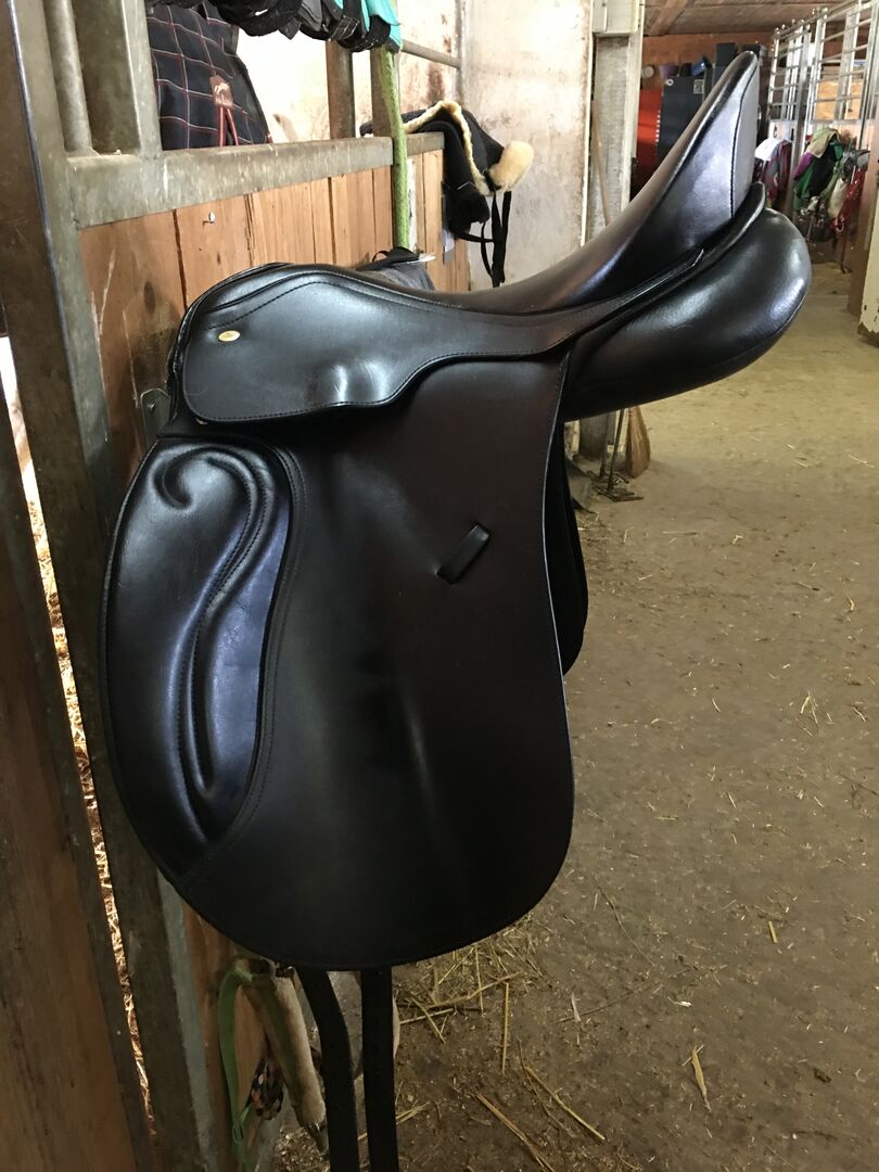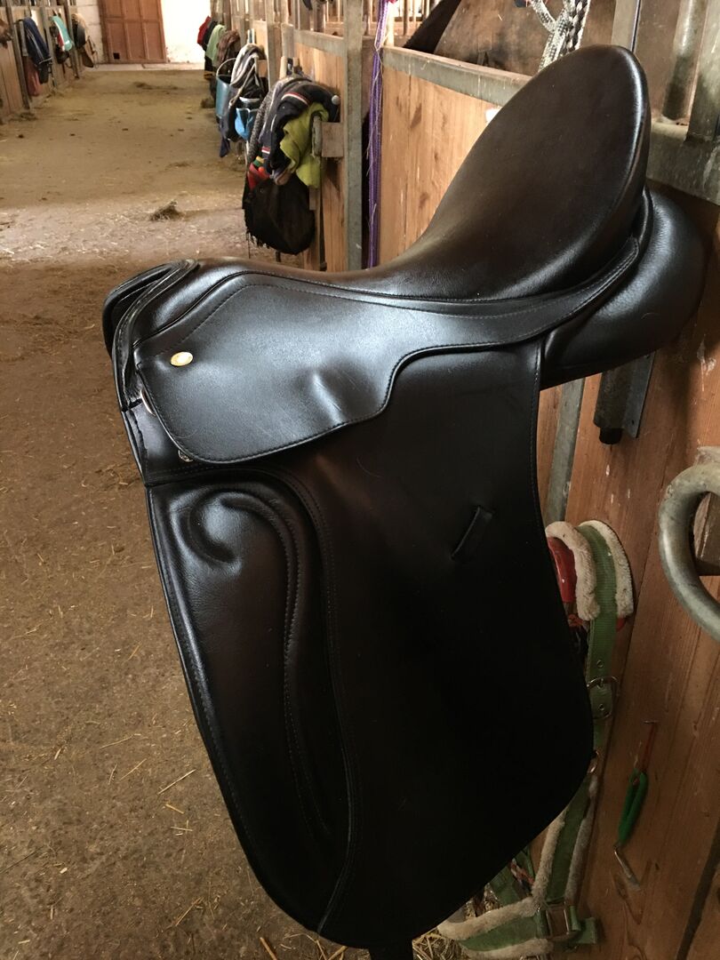 Dressyrsadel - Jag säljer min Horse and Passion dressyrsadel. Storlek 1 (17-17,5 tum). Den är välskött, har normala tecken på användning men inga skador. Ett högkvalitativt sadelunderlag ingår i köpeskillingen. Sadelmakaren har nyligen förnyat stoppningen helt och hållet. Sadeln kan justeras så att den passar nästan alla hästar eftersom sadelmynningen är formbar i kallt vatten. Den användes senast på ett varmblod med hög svank.