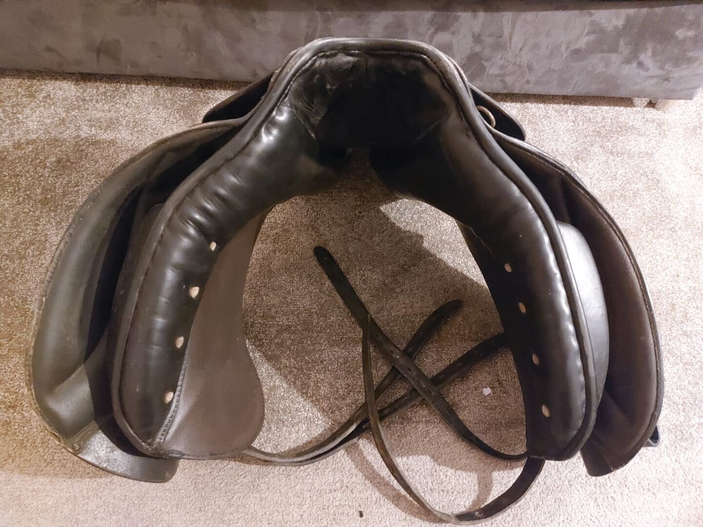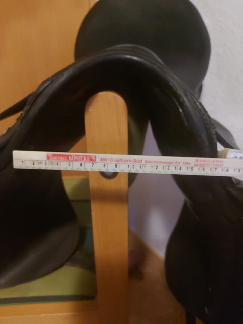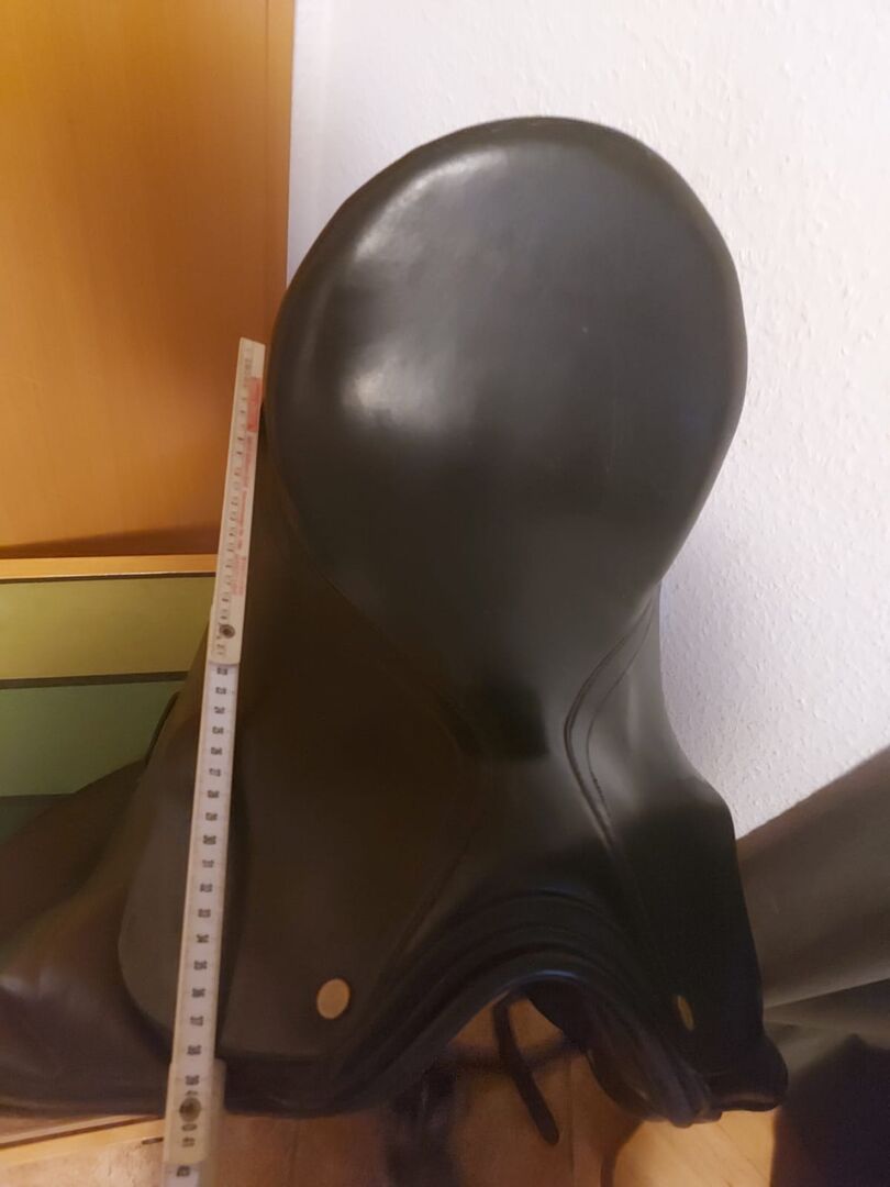 Dressyrsadel 16,5 - På grund av övergivande Vacker dressyrsadel 16,5 och 34 bredd på magsäcken Erbjuder mycket axelfrihet och en bred ryggradskanal. Mycket bekväm passform. Inkluderar remmar, stigbyglar och sadelkuddar.