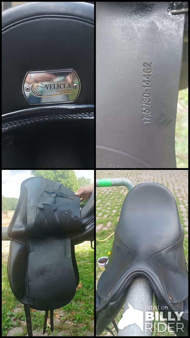 Dressyrsadel 17,5" - Säljer min Velicea Majestic dressyrsadel i mycket bra skick. Väl underhållen, lite använd. Sadeln kännetecknas av mjuka förformade knärullar, medeldjup sits för bästa sittkomfort med en tyngdpunkt som är lämplig för hästen, franska sandwichpaneler. De sömlösa, korta panelerna följer hästens rygglinje. Detta innebär att sadeln kan justeras mycket bra, särskilt för korta hästar.