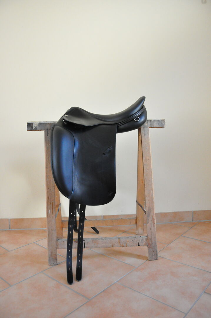 Regelbundet presenteras för sadelmakaren och bedöms i enlighet med detta. Vanliga tecken på användning finns i området för stigbygel läder. I övrigt i ett mycket välskött skick, utan sprickor, revor eller liknande!