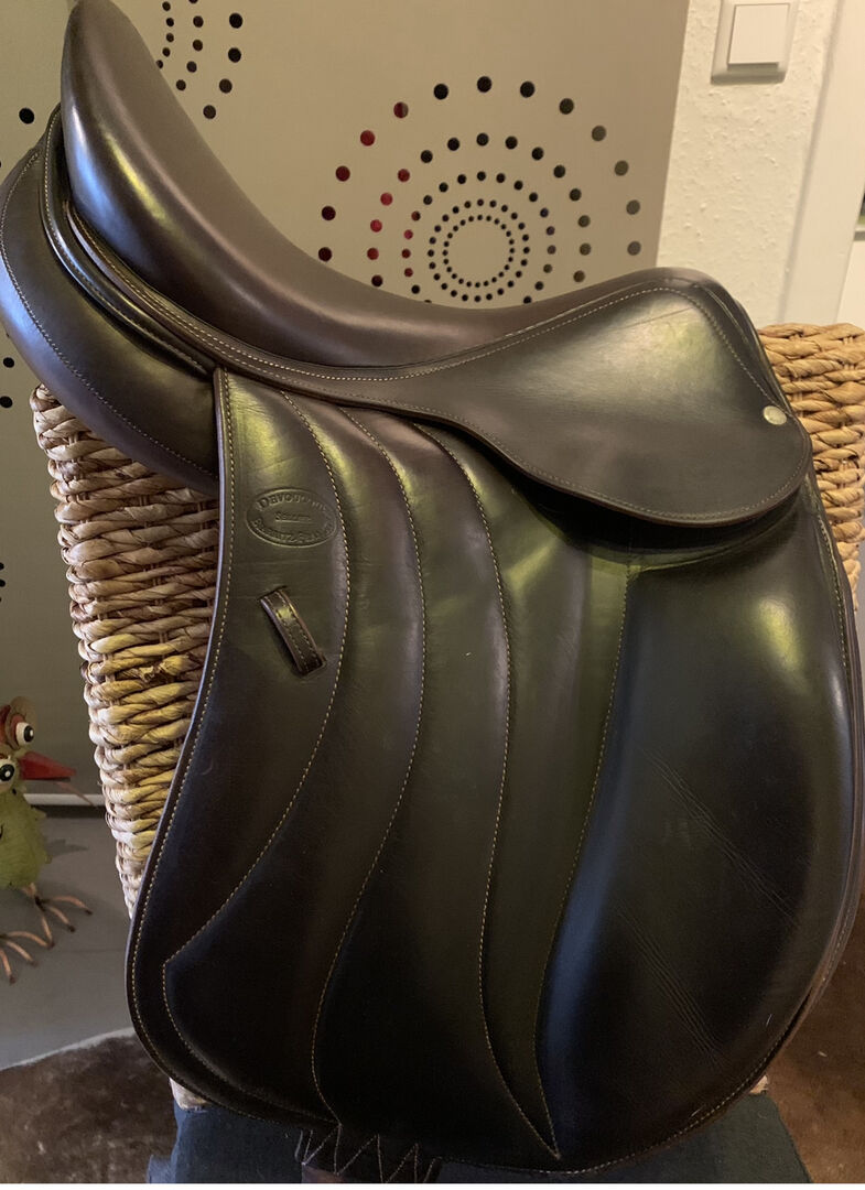 Dressyrsadel 17,5 brun - Super välskött och lite använd dressyrsadel av lyxmärket Devocoux i brun, 17,5 tum, inklusive färgmatchande stigbyglar, samt träns ( Ultrasoft ) av Kieffer storlek fullblod. 999 utan brygga/gelkudde