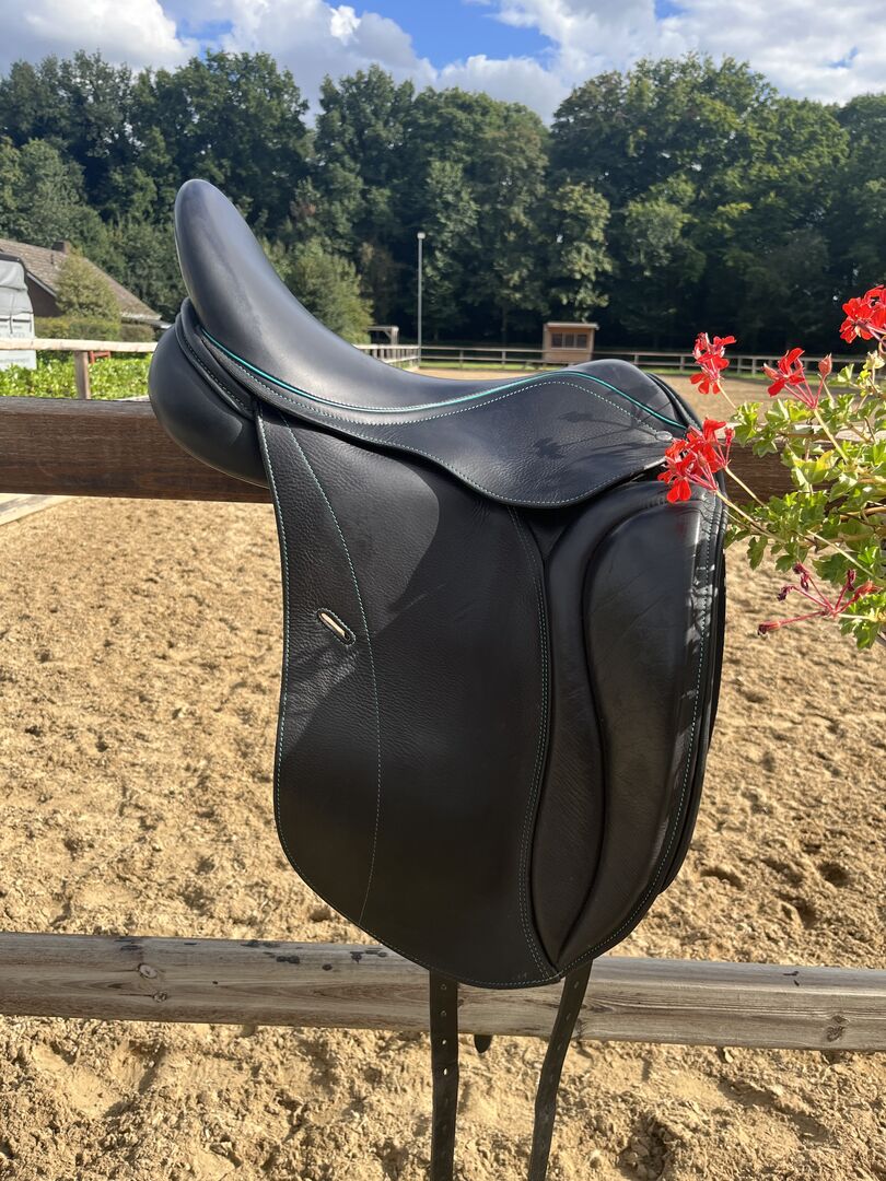 Dressyrsadel 18inch Loxley bliss of London - Vacker 18-tums Lockley Bliss of London-sadel tillverkad av kalvskinn. Med 17-tums kuddar och ett medium träd. Detta ger en rymlig sits för ryttaren och komfort för hästen. Tyvärr är sadeln för stor för oss, 18 tum och långa svettblad går inte bra ihop. För ryttare runt 165.