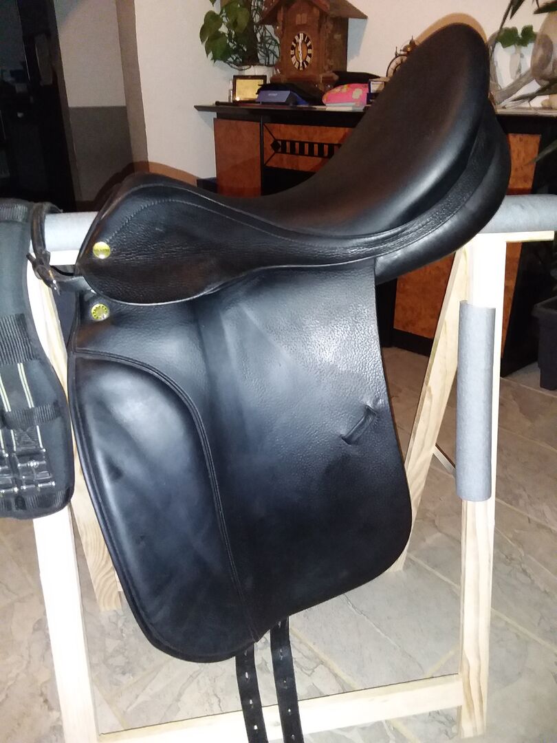 Dressyrsadel - Säljer min välbevarade 17 tums dressyrsadel, med 60 cm magrem av märket Show Master.
