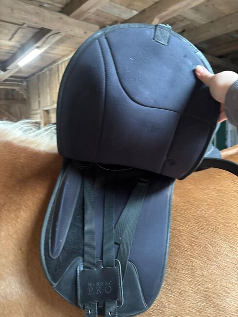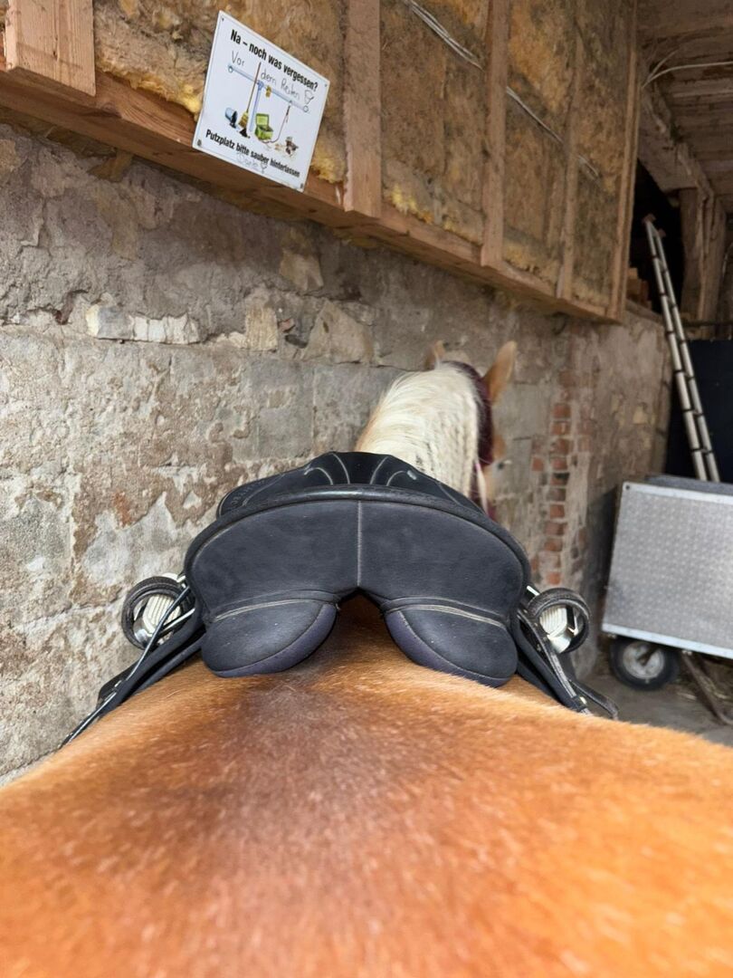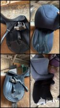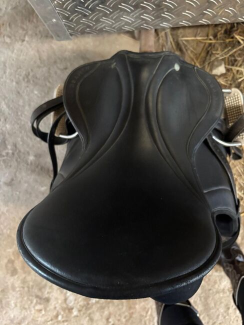 Dressyrsadel, även lämplig för trähästar - Jag erbjuder en välskött sadel med två hål i lädret på ena sidan, men lädret kan tas bort utan att sadeln går sönder. Sadeln är i övrigt i gott skick och visar normala tecken på användning. Den tidigare ägaren klippte av sadelgjordsbanden på båda sidor längst ner, men detta påverkar inte ridningen alls