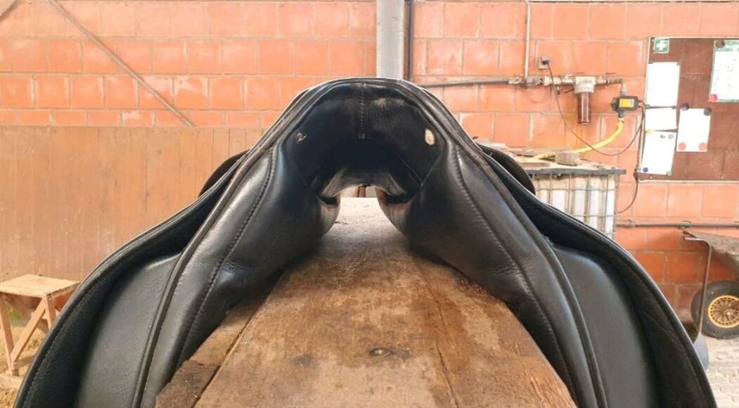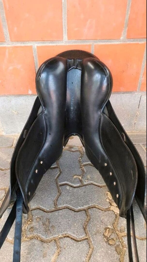 Sadeln har tjocka pommels och en bred panelkanal med en stor kontaktyta. Sätet för föraren är helt mjukt och bekvämt att sitta på. Sadeln är i gott begagnat skick. Den har alltid förvarats på ett torrt ställe och kontrollerats årligen av sadelmakaren.