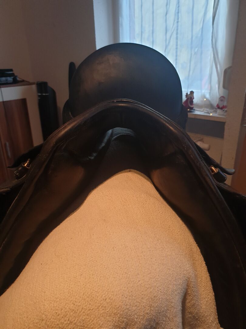 Dressyrsadel Aten - Säljer en välbevarad Busse Athens i 17,5. Sadeln byggdes 2001 så den är lite äldre. Magsäckens bredd är 18 centimeter från magsäck till magsäck. Den har en längd på 45 cm. Det är nödvändigt att ändra stoppningen. Det finns fina sprickor på sätet, men de har inte öppnat sig under åren. Det finns ett litet hål i en av kuddarna, men det är inget problem.