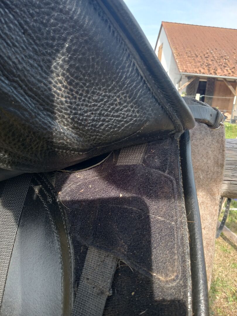Dressyrsadel Bates Wide - I princip är Bates den mer högkvalitativa versionen av en Wintec-sadel eftersom den är tillverkad av läder. Sadelgjordsplattorna är utbytbara. Wide med sitt system av kotlettplattor är avsedd för starka hästar. Vi hade den på en bred ponny. För tillfället har den den lila kotlettplattan. Sadeln är lätt och skön och den 17 tum långa sitsen passar bra för hästar med kort rygg. Knärullarna kan klippas in efter behov. Jag föredrar att rida utan. En kort sadelgjord krävs för sadeln. Mer information på begäran