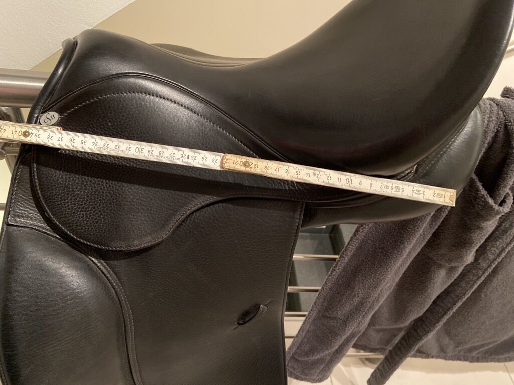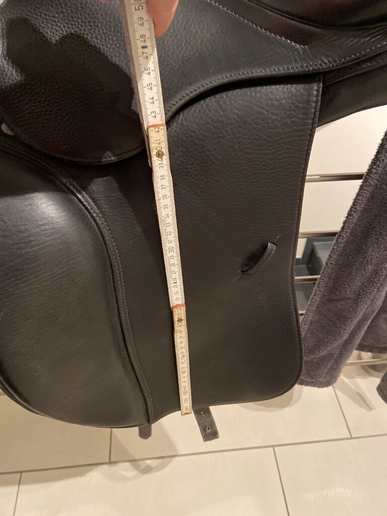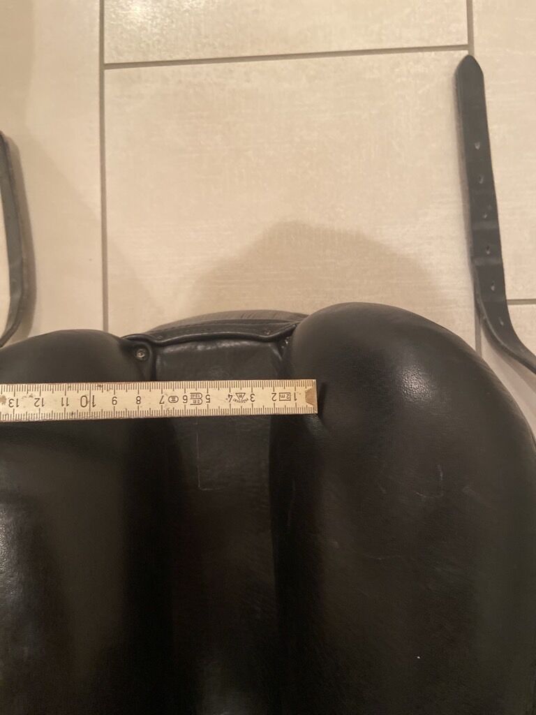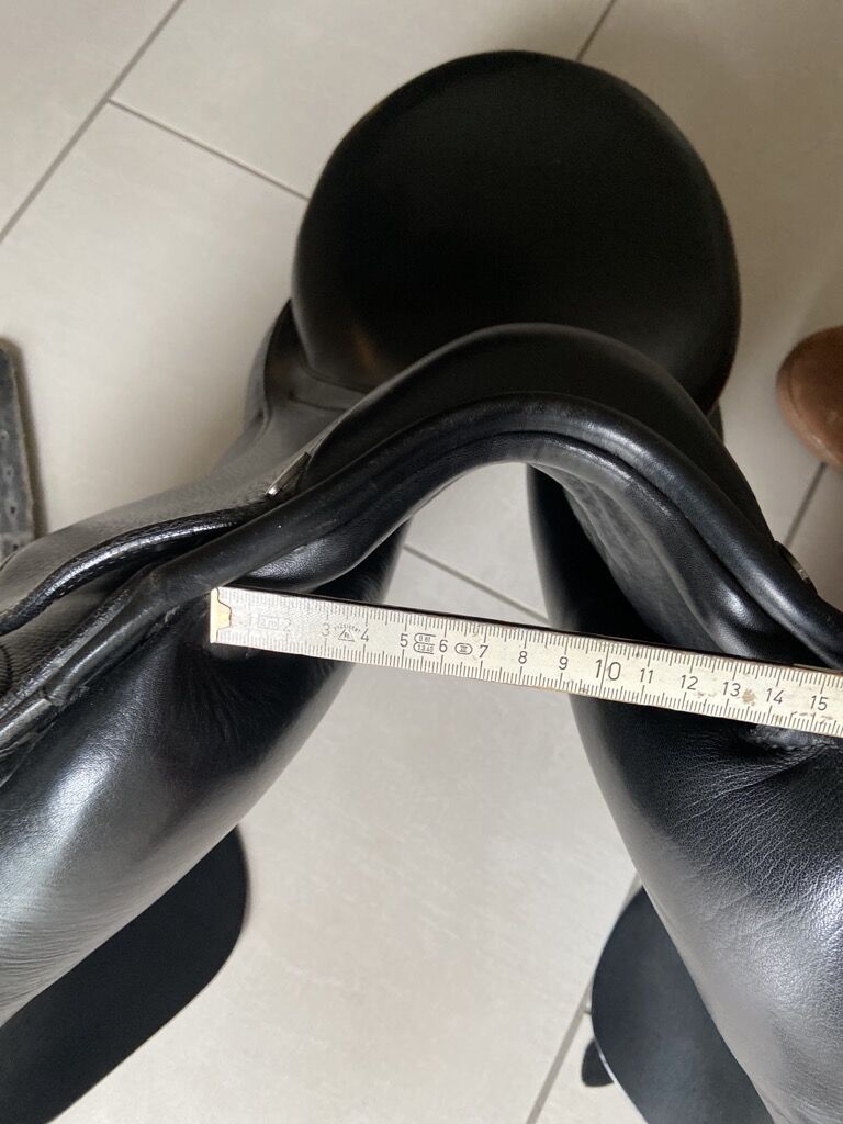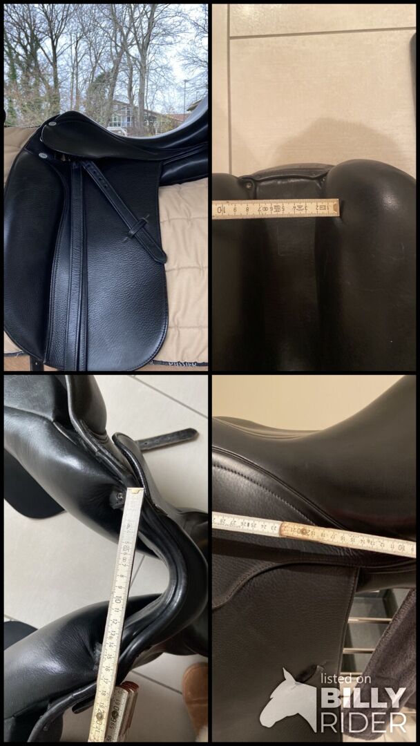 Sadeln har utvecklats i samarbete med Klaus Schöneich från ARR-centret (Centre for Anatomically Correct Riding). Den har en bred ryggradskanal och V-omkrets för optimal tryckfördelning. Magsäcksplattan är U-formad. Detta ger hästen tillräcklig frihet i axelområdet. Sadelmakaren kan justera bredden på ett flexibelt sätt (kallt justerbart). Annars är den superbekväm och ger ryttaren en känsla av att sitta djupt och nära hästen. Mycket fint läder med behagligt mjuka pommels. Fin kort kontaktyta, därför lämplig även för korta hästar. Helt anpassningsbar och justerbar. Som du kan se på bilderna är sadeln som ny. Den har fyllts på helt och hållet i år. Stoppningen är fin och mjuk. PayPal är tillgängligt. Frakt är möjlig mot en avgift. Ursprungligt pris: 2800€