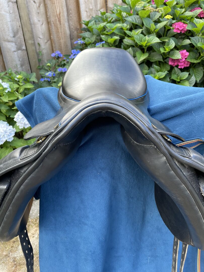 Dressyrsadel CHS, bred, 16,5" - Jag erbjuder denna högkvalitativa dressyrsadel till försäljning eftersom vår ponny har gått i avel. Sadeln är i mycket gott skick och är mycket bekväm. Den passade perfekt på vår ponny med ganska platt skänkel.