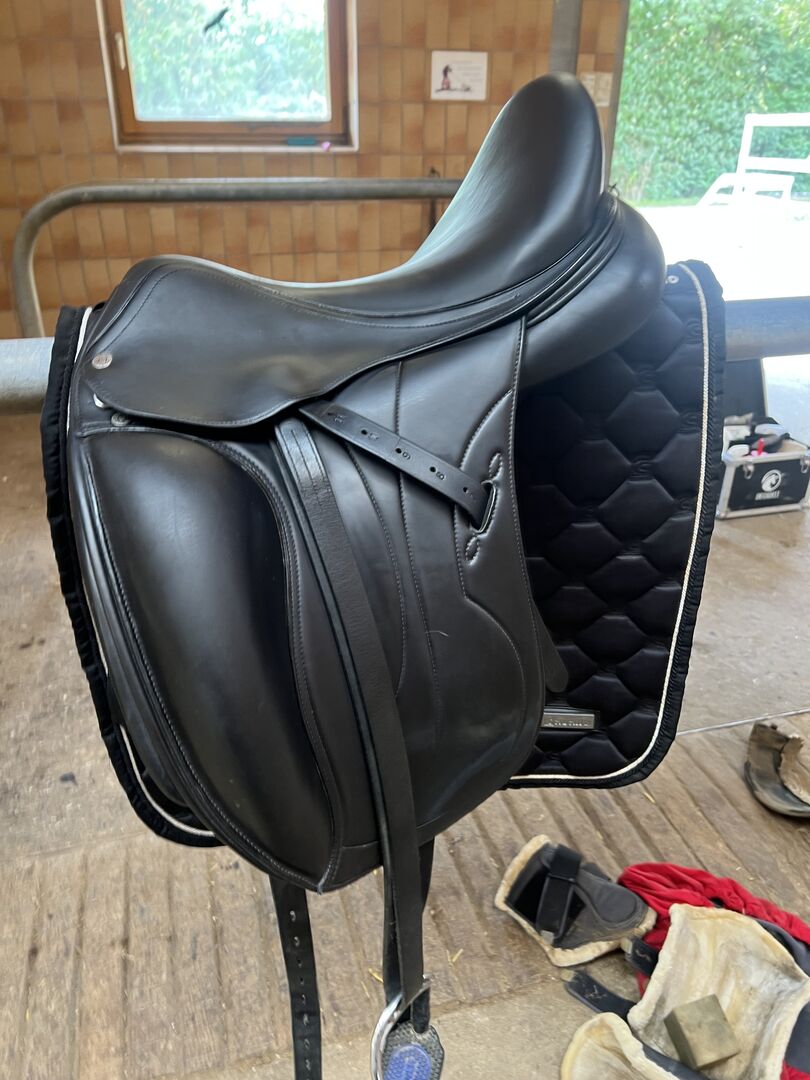 Dressyrsadel Equipe oracle 17 tum kw33 - Jag säljer min älskade Equipe dressyrsadel, det är Oracle modellen och den har 17 tum och en Kw 33 men kan även justeras. Den är justerbar och har suttit på många hästar. Den är väldigt bekväm och en av de bekvämaste sadlarna jag någonsin suttit på. Bekväma pommels som gör att benet kan vila tyst på hästen och ger en optimal passform. Jag skulle aldrig sälja den om den inte passade mitt nuvarande sto. Alla som någonsin har suttit i en sadel som denna skulle inte vilja missa det igen. Den har en monoklaff, så du sitter nära och djupt till hästen. Den har kontrollerats av Equipe och är i perfekt skick. Den har underhållits regelbundet och alltid förvarats torr och varm täckt med Equipe-överdraget. Np 4750€