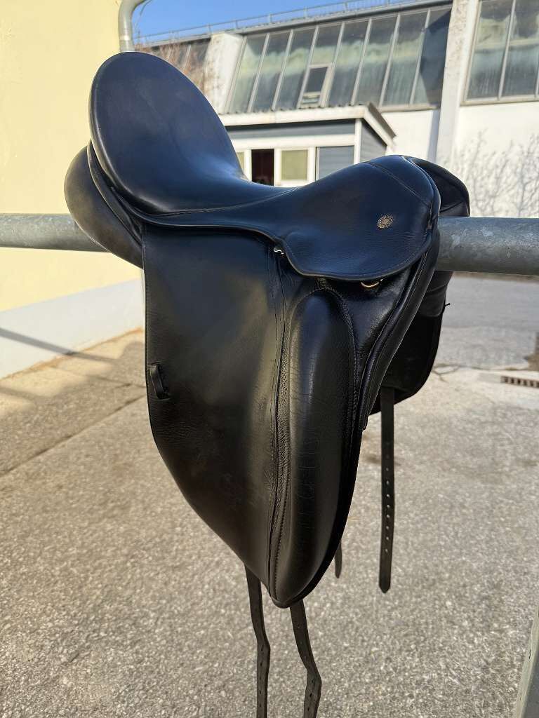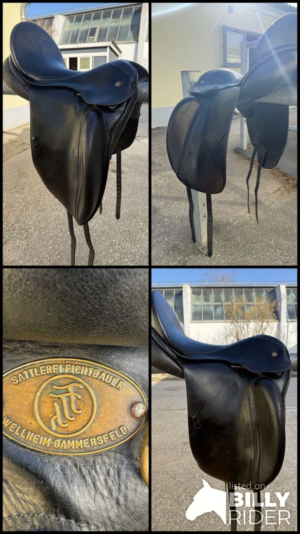 Dressyrsadel "Fichtbauer - Fichtbauer dressyrsadel PAURA KCR 17,5 tum, bred kammare, monterades på mitt Friesian-sto. Sadeln är i gott skick enligt användning, åldersrelaterade tecken på slitage på lädret. Sadeln har alltid varit mycket väl rengjord och omhändertagen, samt regelbundet justerad av sadelmakeriet Fichtbauer. VB 2.000,-