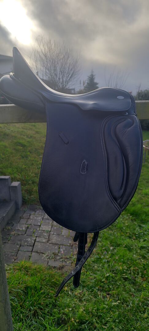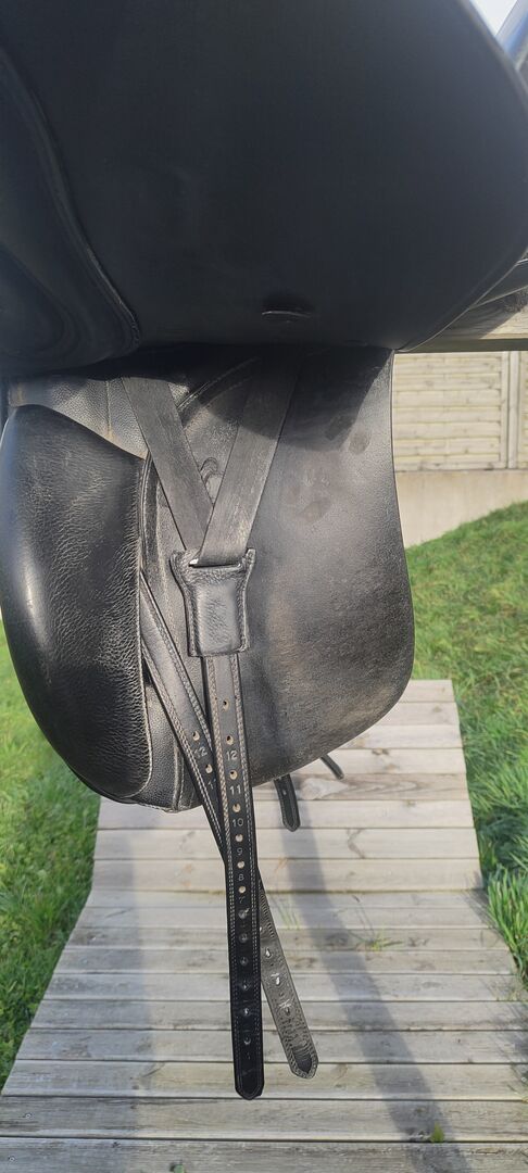 Sadeln är i gott skick och visar tecken på slitage (se foton). Sadeln har alltid varit väl omhändertagen med lädertvål. Den har anpassats flera gånger till min då unga häst, men tyvärr har tiden kommit att sadeln har blivit för bred. Det är den enda anledningen till att den är till salu. Den perfekta sadeln för en unghäst eller skolhäst för lite pengar. Sadeln ger en bra ridkänsla och kan enligt tillverkaren anpassas till nästan alla standardhästryggar.