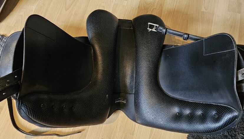 Dressyrsadel Isabell Werth - Jag erbjuder här min Isabell Werth dressyrsadel 17,5 är super bekväm. Sadelmakaren kan enkelt justera den eftersom den har Wollte och inte Cair-systemet. Du kan enkelt ändra kotlettplattan själv.