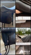 Dressyrsadel Islandssadel Maxflex Emilio - Jag köpte sadeln begagnad från en sadelmakare i januari för 890 € inklusive knärullar. Den är mycket lämplig för korta ryggar, särskilt islandshästar, till exempel. Min ponny red mycket bra i den, men tyvärr har jag bara kunnat använda den högst 10 gånger, eftersom min ponny inte längre är ridbar på grund av sin ålder. Även om de är 17'', bär jag en storlek 40 och kunde sitta i sadeln perfekt. Jag köpte kardborrebandet med sadeln, som jag säljer med sadeln, men de visas inte på bilderna. Sadeln känns väldigt fin, det är väldigt mjukt läder.