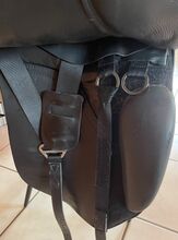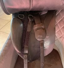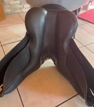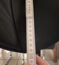 Dressyrsadel Kent and Masters 17,7-18 tum - Till salu en mycket välskött 17,5-18 tums dressyrsadel som alltid har förvarats torrt i sadelskåpet i garaget på en skena. Sittyta 43 cm, sadelklaff 50 cm Den stoppades om helt och hållet för ca 1,5 år sedan och är mycket bekväm. Den har regelbundet kontrollerats av sadelmakaren. Naturligtvis finns det spår av användning där stigbygelskinnen satt och även på några andra ställen. Men inget är trasigt, bara lädret är lite tråkigt. Det finns en liten skavning på baksidan av sadeln Det finns två kardborreknärullar, varav en är något skadad. Det störde inte mig men du kan enkelt köpa dem igen. Den har utbytbara kåpor som du själv kan byta med sex skruvar. För närvarande sitter en gul gulletplatta på och det finns även en orange och en vit. Fraktpriset är ca. 25 €. Paypal möjligt Sadeln kan tas bort mot deposition av hela inköpspriset. Om du har några frågor, vänligen kontakta mig