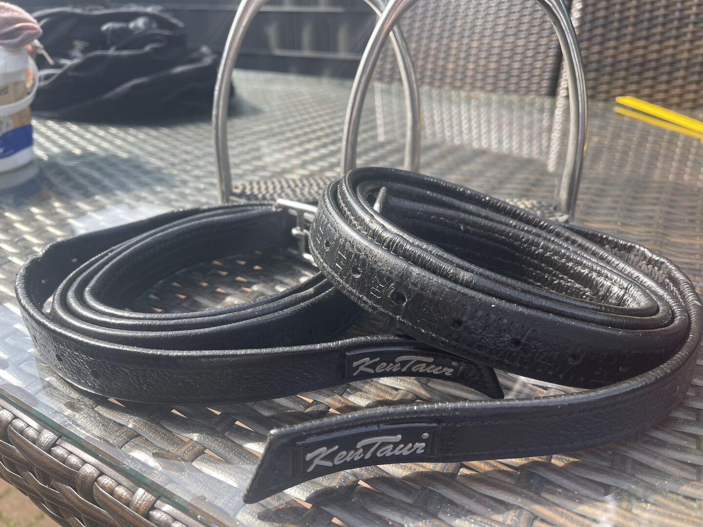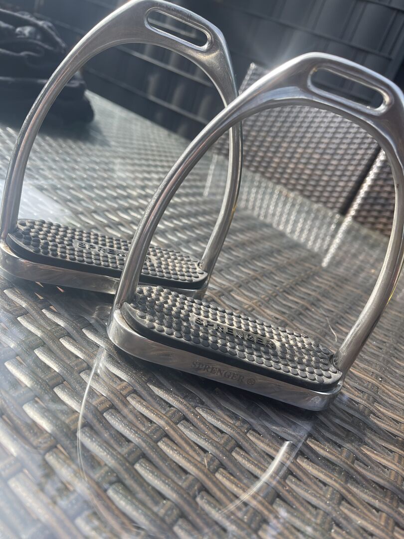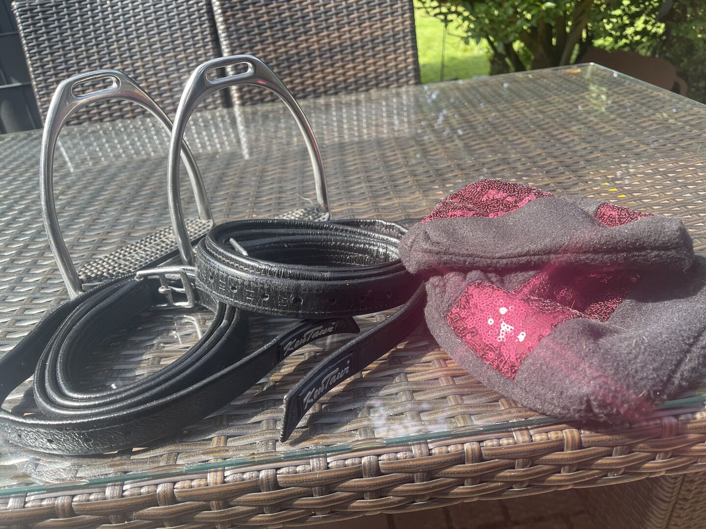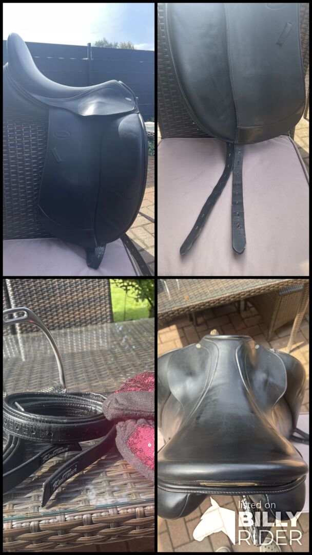 Sadeln har alltid varit utrustad med ett sadelskydd och stigbygelskydd. Vid köp av sadeln skulle stigläder från Kentaur och stigbyglar från Sprenger (stigbygelskydd) ingå (se bild). Vi kommer säkert överens om priset. :)