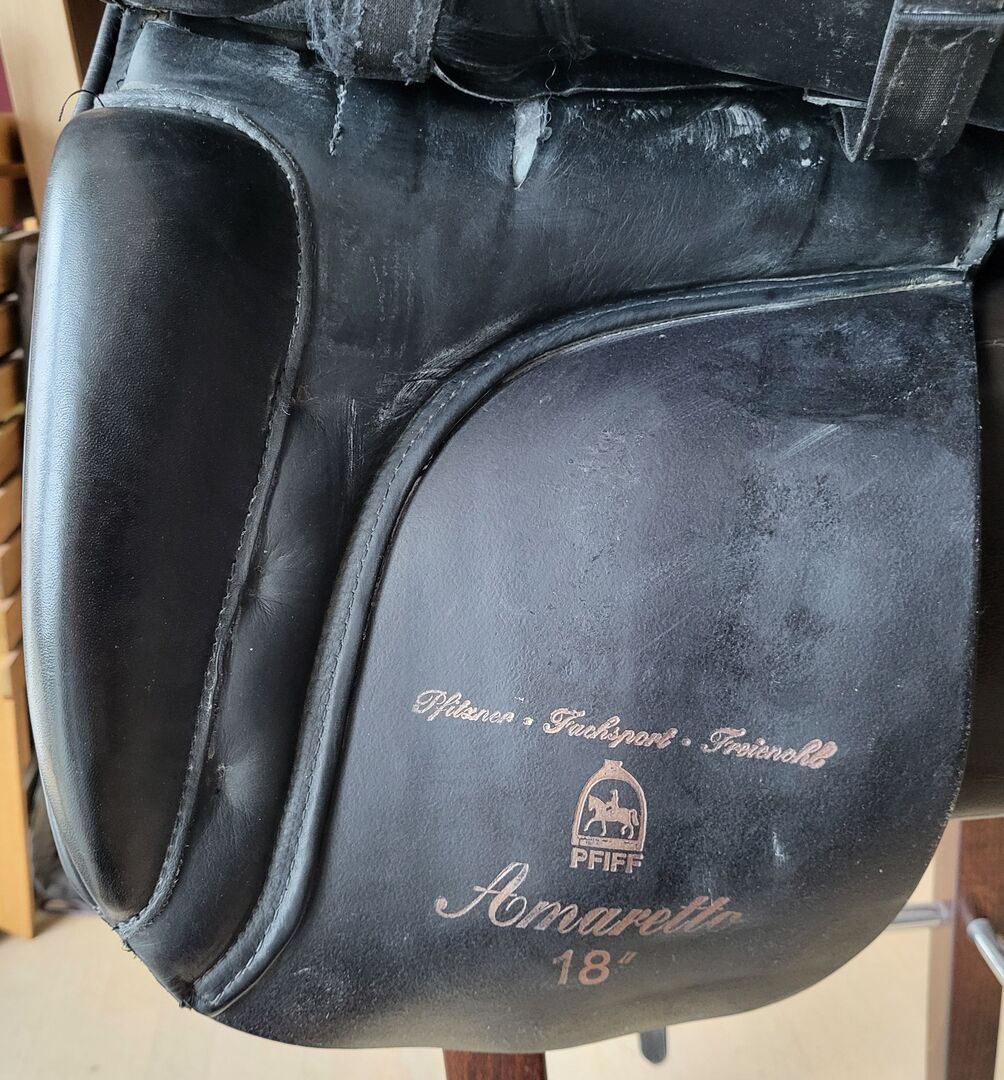Dressyrsadel Pfiff Amaretto svart 18" KW 2 **toppskick** - Jag erbjuder en Pfiff Amaretto dressyrsadel i svart i 18" och kammarbredd 2. Mycket bra, nästan nyskick då den knappt har använts. Tyvärr passar den inte min unghäst, så jag säljer den med tungt hjärta.