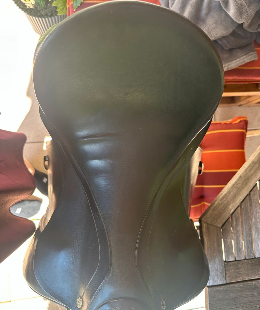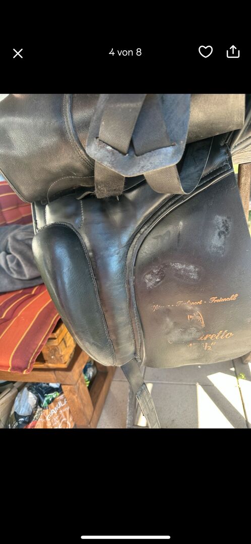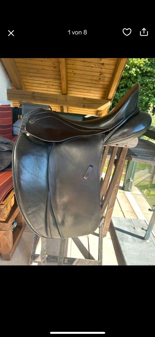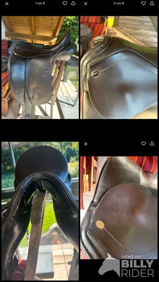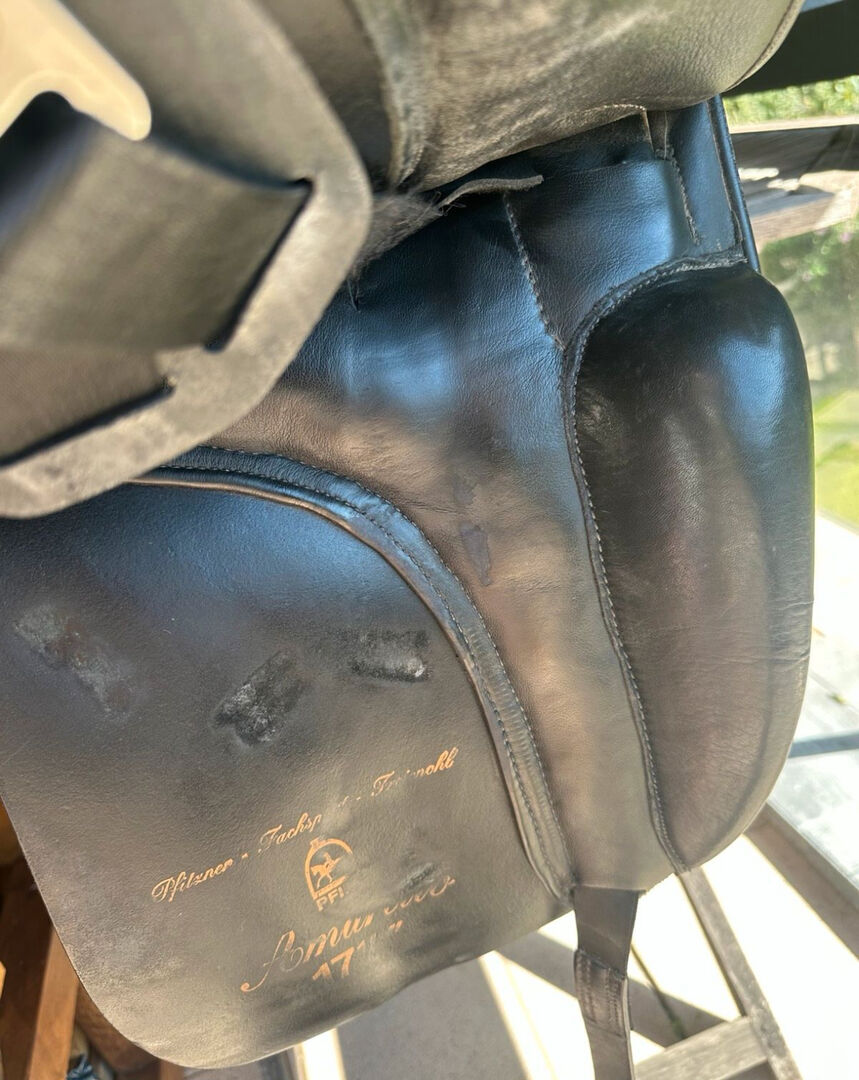 Dressyrsadel Pfiff storlek 17,5 svart - Jag säljer min Pfiff dressyrsadel i storlek 17,5. Jag hade den på min häst i ca 6 år och gillade den alltid väldigt mycket. Sadeln är mycket bekväm och har inga funktionella defekter. Naturligtvis har den några små tecken på slitage under sadelklaffen, men du kan inte se dem. Det finns inga skador eller sprickor i lädret. Lädret är mjukt och har regelbundet vårdats. Kammaren är normalbred, så den är mer lämplig för hästar med normal mankhöjd. Min häst har nu vuxit ur den, så jag säljer.