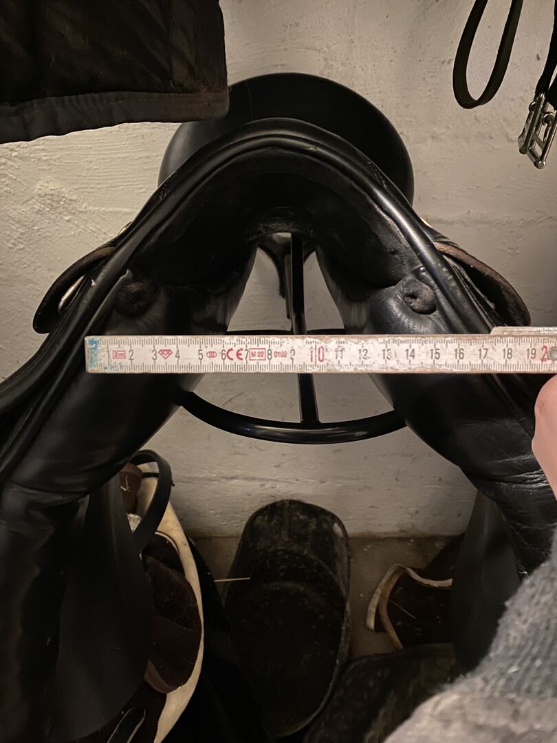 Dressyrsadel Prestige Hippos Dressage 17/33 - Prestige Hippos Dressage (lillasyster till Top Dressage) 17 tum, 33 kammare, bred ryggkanal och kilpaneler - kall justerbar på plats och i mycket gott skick! Gördelremmarna är centrerade annorlunda än vanligt, men detta kan naturligtvis ändras igen utan problem. Den är verkligen välskött och har knappast några tecken på användning! Den stoppades om för några månader sedan och är supermjuk! Sadeln är idealisk för hästar med impuls och högre manke. Du är underbart nära hästen och har en riktigt fin djup sits. Tyvärr passar den inte mitt sto. Sadelklaff finns att tillgå. Tillverkningsår 2003 (röd knapp)