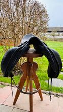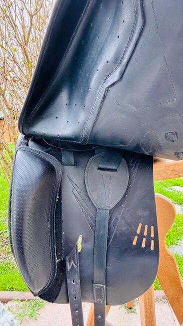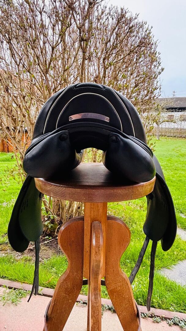 Jag säljer en dressyrsadel i mycket gott skick av märket Prestige. (Spår av användning se bilder) Sadeln är inte bara visuellt ett blickfång utan också en absolut drömsadel på grund av sin komfort. Denna fördjupning på sätet har den dubbla funktionen av ventilation och därmed kylning av hästen och ryttaren samt avlastning av coccyxen. Fördjupningen är täckt med ett speciellt, mycket elastiskt 3D-material, vilket gör sätet ännu bekvämare. Sadeln köptes 2021 & omstoppad en gång 2024.