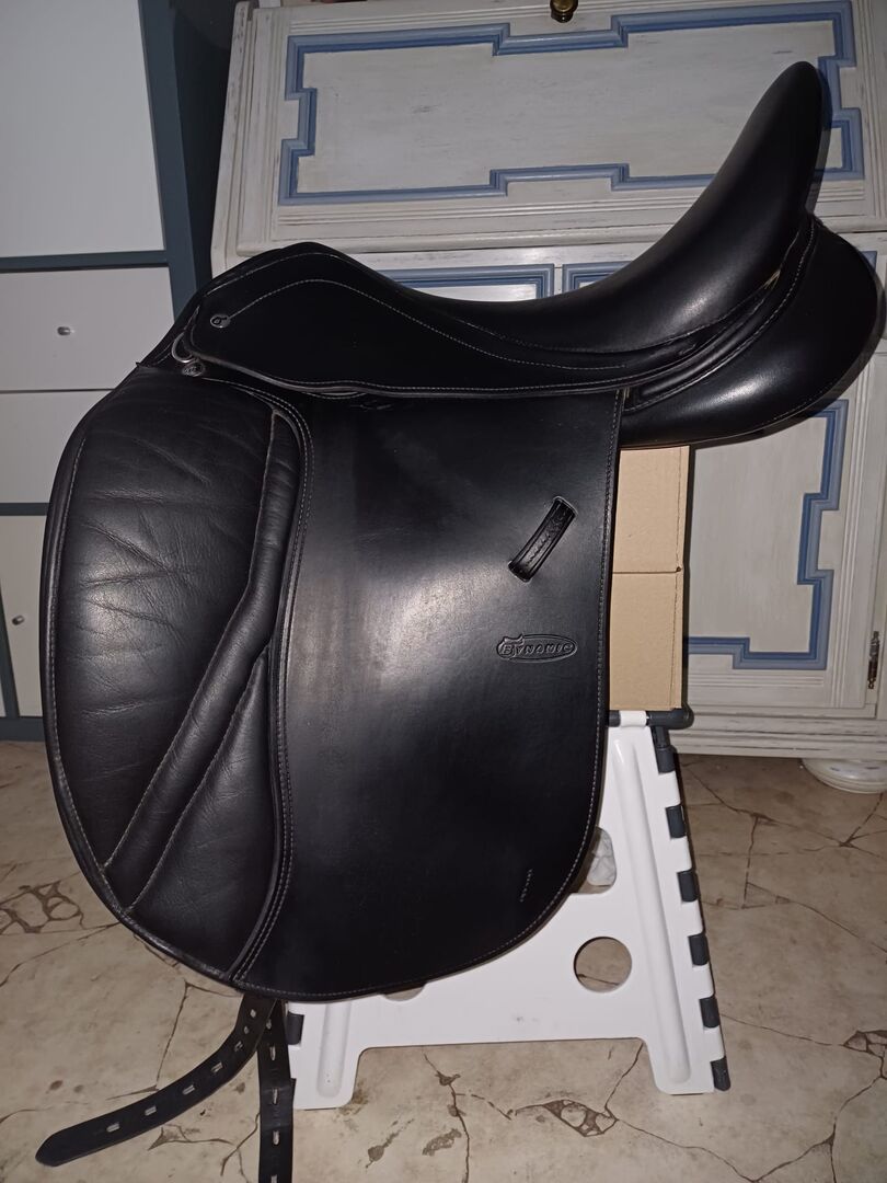 dressyrsadel, sadel, Bynamic - Jag säljer en fantastisk dressyrsadel från varumärket Bynamic. Sadeln köptes begagnad för ca 2 år sedan. Sadeln är i perfekt skick. Den är super bekväm. Lädret är fint och mjukt. Enligt sadelmakaren är sadelbredden 32 tum och sitsen är 17 tum. Tyvärr har hästen blivit ganska stark, så den här sadeln passar inte längre.