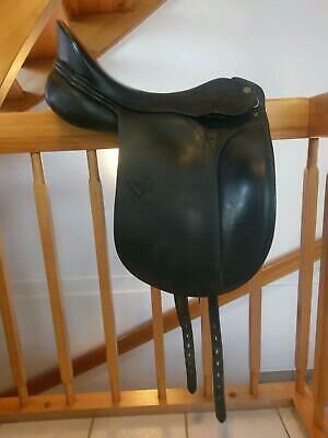 Dressyrsadel Schuhmacher Profi Comfort 30mm Chamber 18" Seat - Till salu är en mycket välbevarad dressyrsadel från Schuhmacher Profi Comfort! Den har en medium kammare (30) och en 18" sits. Sadeln har en bra passform och är mycket bekväm. Du kan också sitta bra i den om du faktiskt behöver 17,5 tum. Den har inte använts så mycket eftersom hästen är sjuk. Den säljs bara för att det inte finns någon häst kvar. Sadeln kan också skickas!