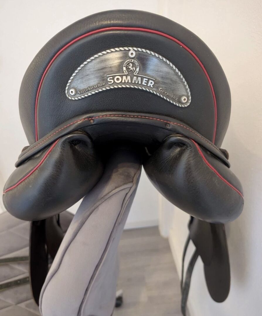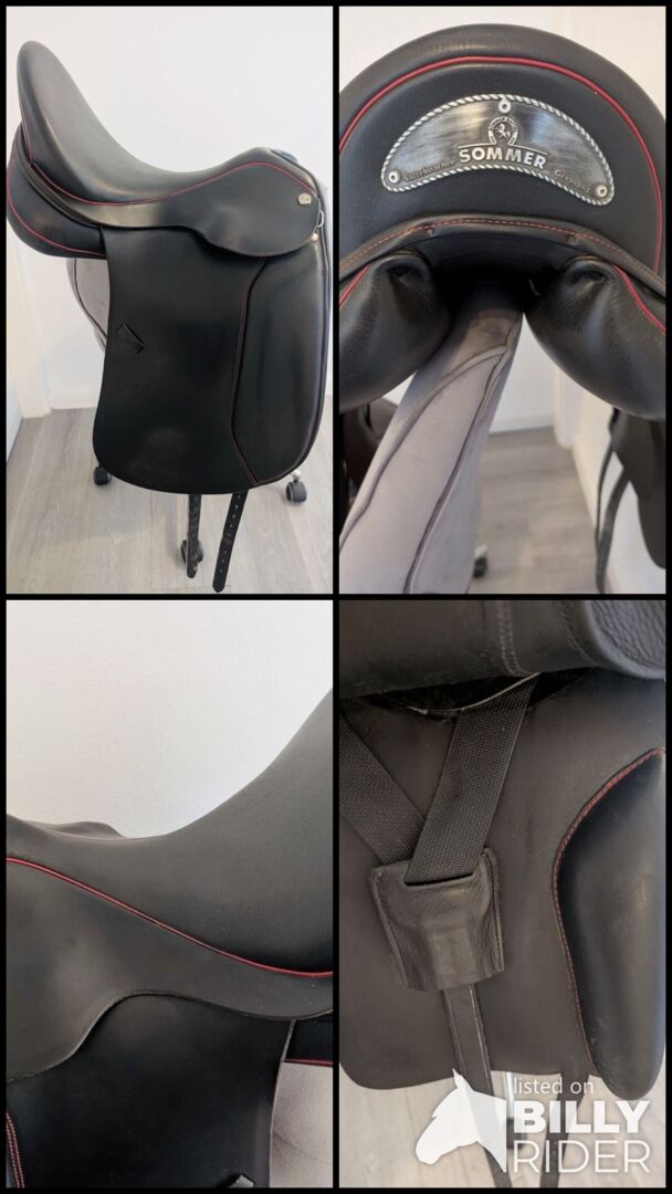 Dressyrsadel Sommer DIPLOMAT Exklusiv - Till salu här är en väl underhållen Sommer dressyrsadel. Sadeln har alltid varit väl omhändertagen och förvarats i en klimatkontrollerad sadelkammare med det medföljande Sommer-sadelöverdraget.