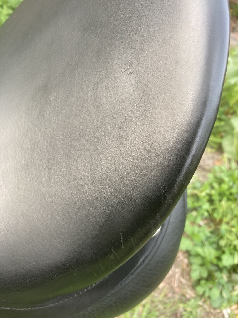 Sadeln är mycket bekväm. Den visar normala tecken på användning, men måsarna är inte slitna (se bilder). Det finns några små repor på den vänstra bakre kanten samt på den bakre delen av sätet (syns också på bilderna).