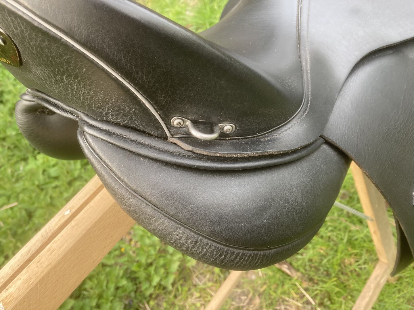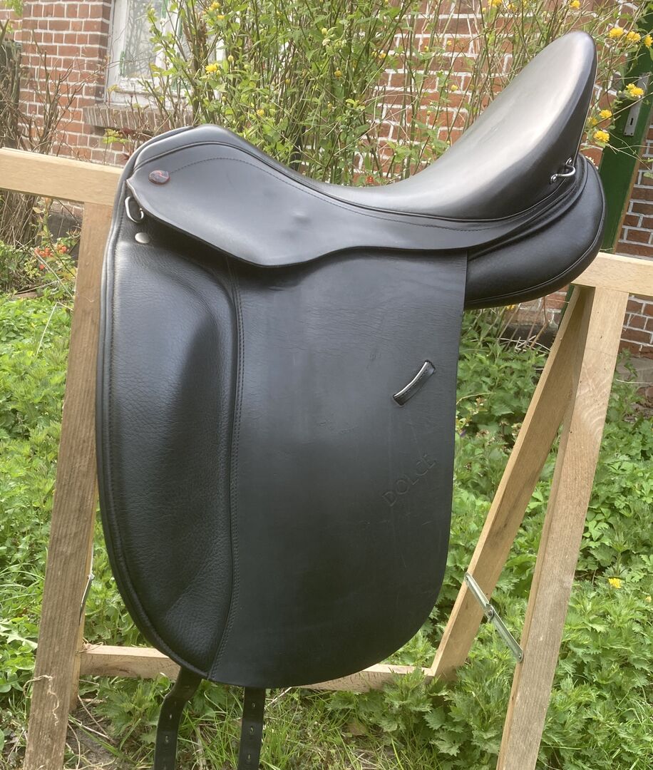 Dressyrsadel Sommer Remos Dolce 17,5" - Jag erbjuder en dressyrsadel från Sommer Saddlery. Det är modellen Remos Dolce, inköpsdatum 03/2017 (sadelpass finns och kommer att ingå). Sätesstorleken är 17,5 tum, bredden var ca 32 vid leverans, gjordes lite smalare för mitt sto. Sadelmynningen är kalljusterbar, vilket gör att sadeln kan anpassas till en stor variation av hästtyper. Detta var på ett mycket smalt och smalt sto med en höjd på 1,76 meter. Jag har dock också sett den här modellen på en kallblodig häst med runda revben.