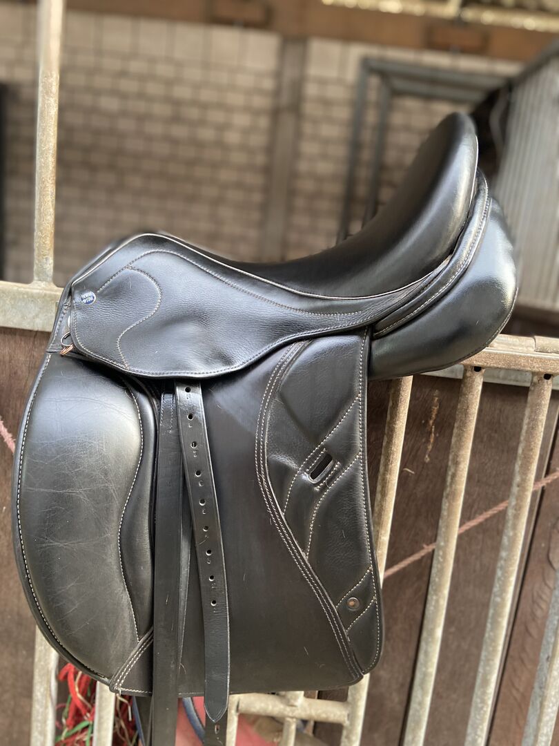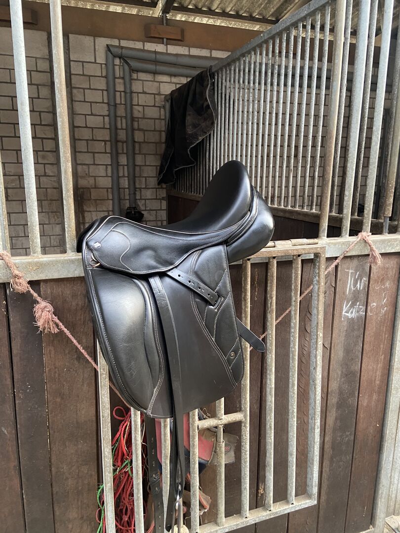 Dressyrsadel till salu - Jag vill sälja min dressyrsadel från champion eftersom vi vill köpa en hoppsadel. Sadeln är väl vadderad och pommels är avtagbara via kardborreband. Det ursprungliga priset var 3500 euro.