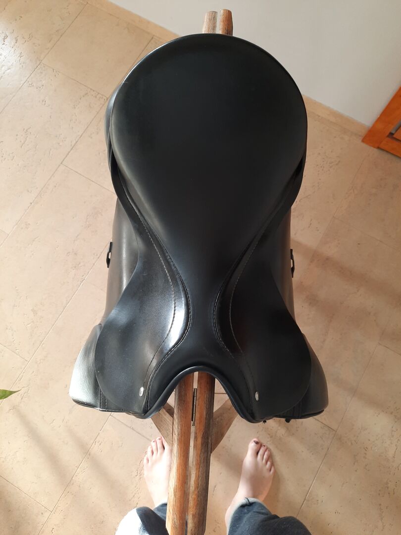 Modern och elegant dressyrsadel för barn och ungdomar. Den är tillverkad av särskilt mjukt läder. De variabla lårstöden kan placeras där de behövs tack vare kardborrsystemet. Sadeln erbjuder hög sittkomfort tack vare dubbla madrasser. Den anpassade Y-grimman ser till att sadeln stannar i perfekt position på hästens rygg. Med plastsadelträd, långa remmar, kilpaneler och sadelpaneler för mer frihet vid skänkeln. Mynningen är justerbar.
