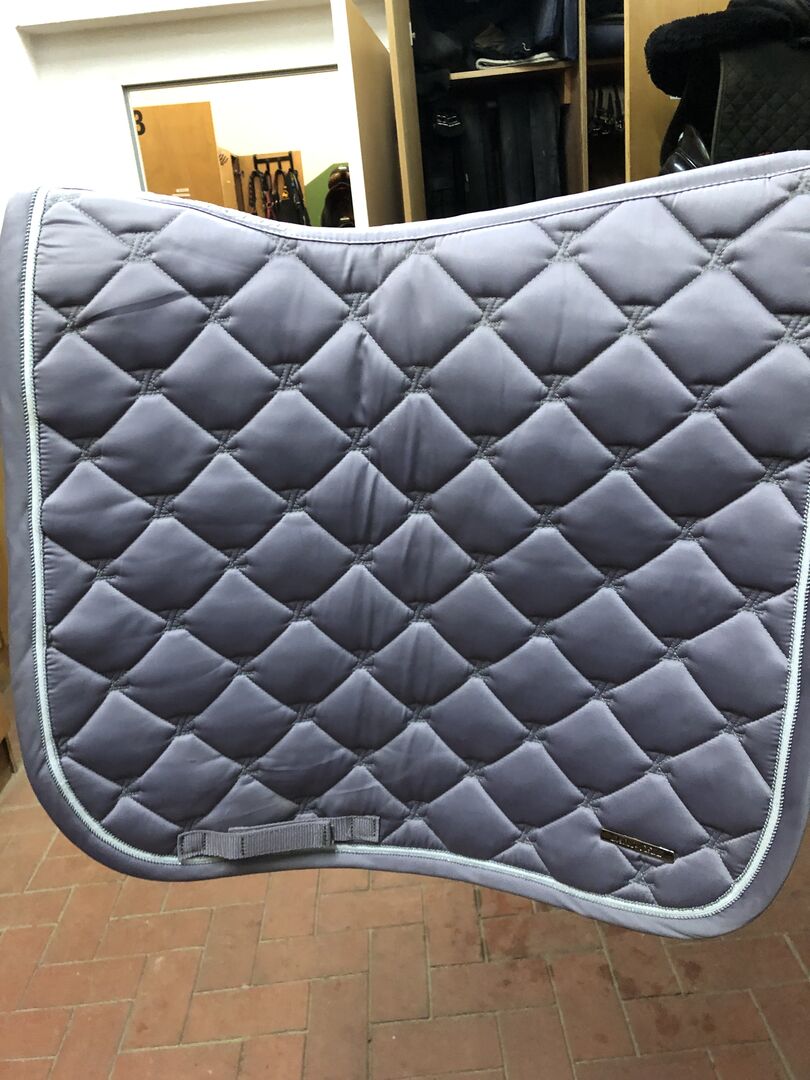 Dressyrsadelunderlag Lavender WB - Till salu är mitt dressyrsadelunderlag från Lamicell i färgen lavendel. Sadelunderlaget har varit på hästen 2 gånger, tyvärr gillar jag det inte. Sadelunderlaget är i mycket gott skick på grund av den ringa användningen och nästan som nytt. Sadelunderlaget har kardborreband för sadelgjorden. Fästelementen är också fortfarande i toppskick! Storleken är WB.