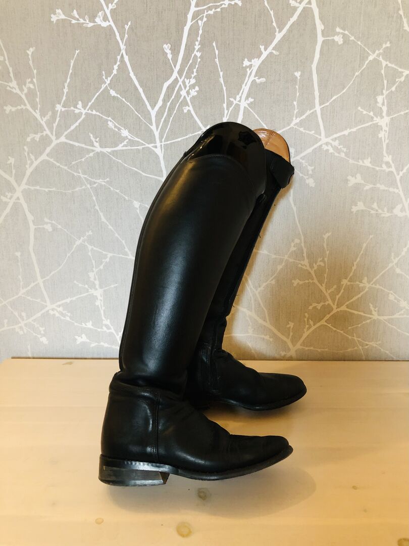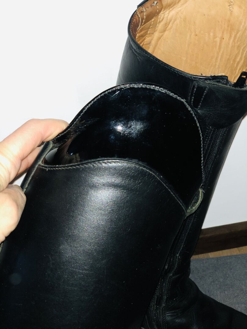 Dressyrstövlar - Jag erbjuder begagnade ridstövlar i storlek 36,5. Tyvärr är stövlarna för snäva vid vaden, vilket är anledningen till att jag aldrig har ridit i dem själv. Skicket är mycket bra med fina patentdetaljer och dragkedjan fungerar fortfarande perfekt. Vaden är ca 35 cm bred, höjd: se bilder.