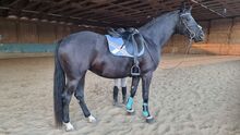 Dressyrtalang med charm och perspektiv - Plats: 89129 Langenau Turn The Tide AM - ett vackert, stort svart sto med en modern sporthästtyp och mycket bra konformation. Född i maj 2022 presenterar hon sig för närvarande med en höjd på cirka 167 cm. Tess imponerar inte bara med sitt eleganta utseende och sin uttrycksfulla färg, utan också med en särskilt korrekt grund och hälsosamma förutsättningar för en sportkarriär. Hon har vuxit upp under de bästa förhållandena från tidig ålder och är extremt vänlig, människoorienterad och öppen i den dagliga kontakten. Hon är nyfiken, gosig och okomplicerad att hantera - både hos veterinären och hovslagaren. Turn The Tide AM är framskodd, regelbundet vaccinerad och avmaskad, känner till såväl boxuppstallning med paddock och bete som livet i en flock och är balanserad och social i all form av hästhållning. Karaktärsmässigt har Tess allt man kan önska sig av en unghäst: hon är väluppfostrad, villig att lära sig och alltid uppmärksam i arbetet. Hon rids för närvarande in försiktigt och är bekant med såväl longering som sina första turer i skritt med en erfaren häst vid sin sida. Stoet är alltid motiverad att samarbeta och är också väluppfostrad i fält. Hennes utmärkta grundgångarter talar för sig själva - särskilt den tydliga, säkra skritten, en elastisk trav med god axelfrihet och en galopp i uppförsbacke tyder på en hög dressyrpotential. Hennes stamtavla understryker också denna bedömning: Hon kommer från en prestationstestad linje som är inriktad på talang, ridbarhet och atletisk lämplighet (Topas av Totilas x Donnerhall). Kombinationen av anlag och karaktär gör henne till ett lovande ungt sto för dressyrsporten. Turn The Tide AM säljs direkt av uppfödaren. Hon är idealisk för ambitiösa ryttare som letar efter en ung häst av hög kvalitet med utsikter till tävling.