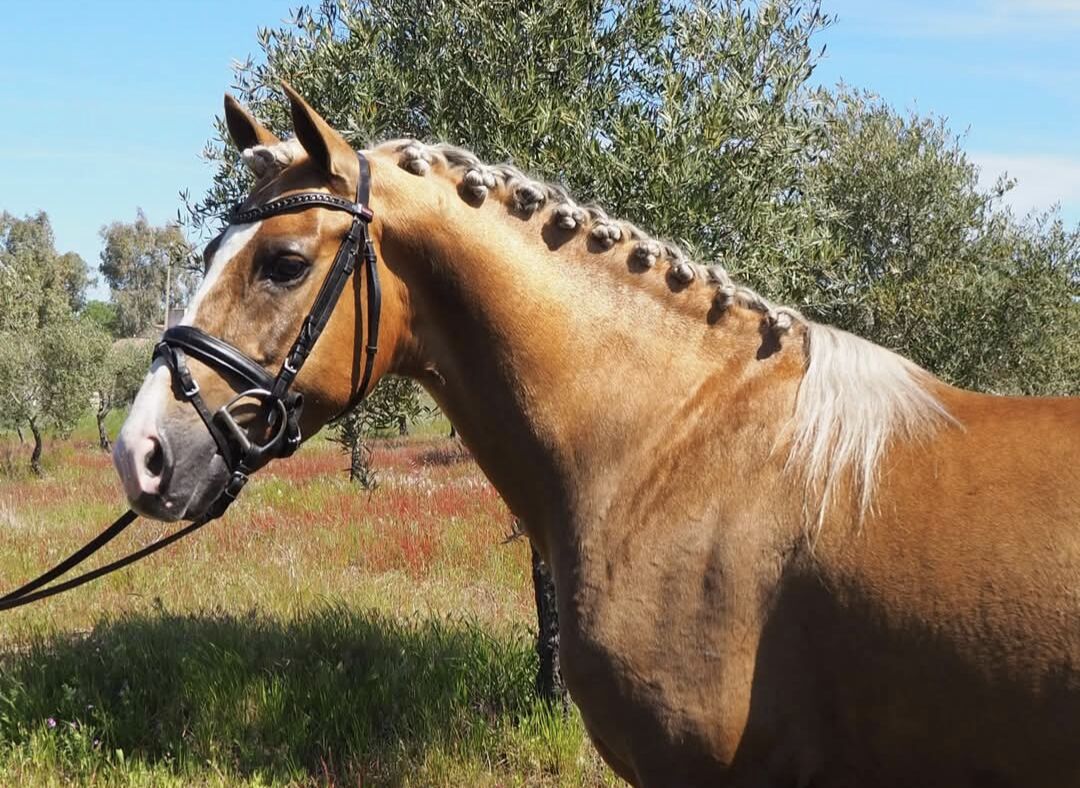 Drömlik vacker ridande ponny - Denna fantastiska valack imponerar inte bara med sitt extraordinära utseende, utan också med sin fantastiska karaktär. Som palomino med silverman är han ett av undantagen bland andalusierna. Denna stiliga hund är mycket väluppfostrad och vänlig, även barn kan hantera honom utan problem. Han är gosig, tillgiven och mycket hängiven sina människor. Han är också helt okomplicerad i vardagen. Han springer pålitligt på fältet (till och med en 12-åring går ut med honom) och gör också en bra figur i arenan, men bara med åldersanpassad uppmuntran. På grund av sin karaktär skulle han säkert bli en bra terapiponny efter lämplig träning. Han är också lämplig för barn, MEN endast med stöd av en erfaren ryttare, för även om han är så väluppfostrad är han fortfarande bara 5 år, och det bör inte glömmas bort. Han har inte ridits på några veckor eftersom hans ägare har flyttat bort och vi nu vill sälja honom. Det är därför han för närvarande är barfota, men kan också skor, eftersom vi har extrema grusvägar. En fantastisk ridponny som inte lämnar något övrigt att önska... faktiskt... Nu kommer det stora MENET Den här drömponnyn skulle egentligen kosta 10000€, han hittade snabbt en presumtiv köpare, vid den kliniska undersökningen var allt topp, men tyvärr visade röntgen att han har två benfjäll baktill (mindre än ett chip). På grund av att han nu har ett fynd och inte bör användas i sport kostar han nu hälften så mycket. Vi har inte röntgenbilderna eftersom vi inte ville betala 600€ för dem. Den som skulle vilja ha honom och vill ha fynden svart på vitt är välkommen att boka en röntgen. Vänligen kontakta oss endast om ni är seriöst intresserade!