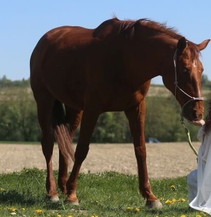 Drömmen om en hästlärare är helt klar i huvudet - Jag vill sälja mitt sto eftersom jag av tids- och hälsoskäl inte längre kan göra henne rättvisa. Mitt sto är en själ av en häst. Hon är helt klar i huvudet, pålitlig och har inga dåliga vanor som att bocka, stiga upp etc. Hon är mycket bra i sadeln. Hon är lätt att rida på fältet, både i grupp och ensam, och på arenan. Jag har dock bara lagt henne i tränade händer, vilket innebär att du bör vara sadelfast och tränad i alla grundläggande gångarter. Hoppning, stavträning och massor av variation är hennes värld. Det finns i hennes blod på grund av hennes härstamning. Video på begäran Hon var tidigare en aktiv tävlingshäst och är fortfarande registrerad som tävlingshäst i Österrike. Att hon inte längre deltar i tävlingar beror på mig, eftersom det inte är min ambition. Hon är mycket välutbildad, jag säger alltid min professor, erfaren i tävlingar och om någon vill sträva efter mer, en absolut lärare. Dressyrmässigt är hon också på en mycket bra nivå, inklusive sidogångarter etc. Hon kan och gör allt. Rutinkontroller hos tandläkare och osteopat samt hovslagare var sjätte vecka, hon har fyra järn, är en självklarhet. Det finns inga hälsobesvär. Vid något tillfälle fick hon för vana att koppla av tristess, vilket inte alls påverkar henne. I en stor hjord mår hon inte bra och det stressar henne, Hon har låg status. Hon är mycket vänlig mot smeden och lastningen. Placera före pris, men hon kommer inte att ges bort. Pris för försäljning.