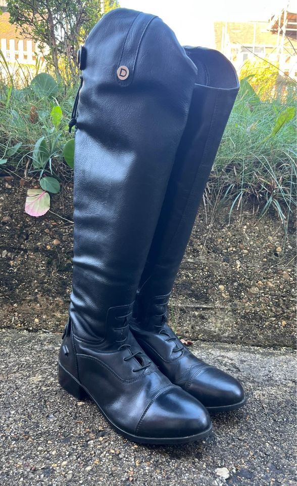 Black Dublin tall boots, ridden in max 10 times. Only selling as calf is too wide for me. Size 8, regular/regular. Measures 39cm calf and 47cm height. Original price £160, asking £80 obo. Collection SO45 or can post for extra.
