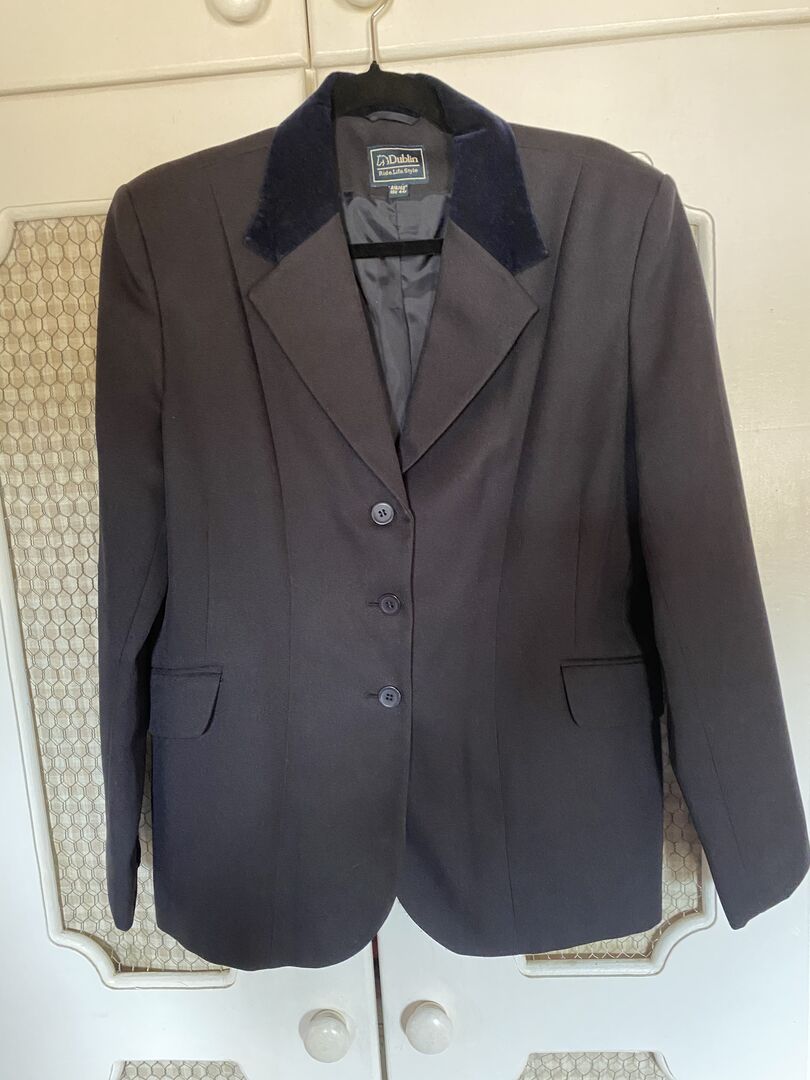 Dublin show jacket in Navy in like new condition. Single back vent and velvet collar, fairly lightweight. Happy to post if you cover PayPal fees and postage, or free local collection.