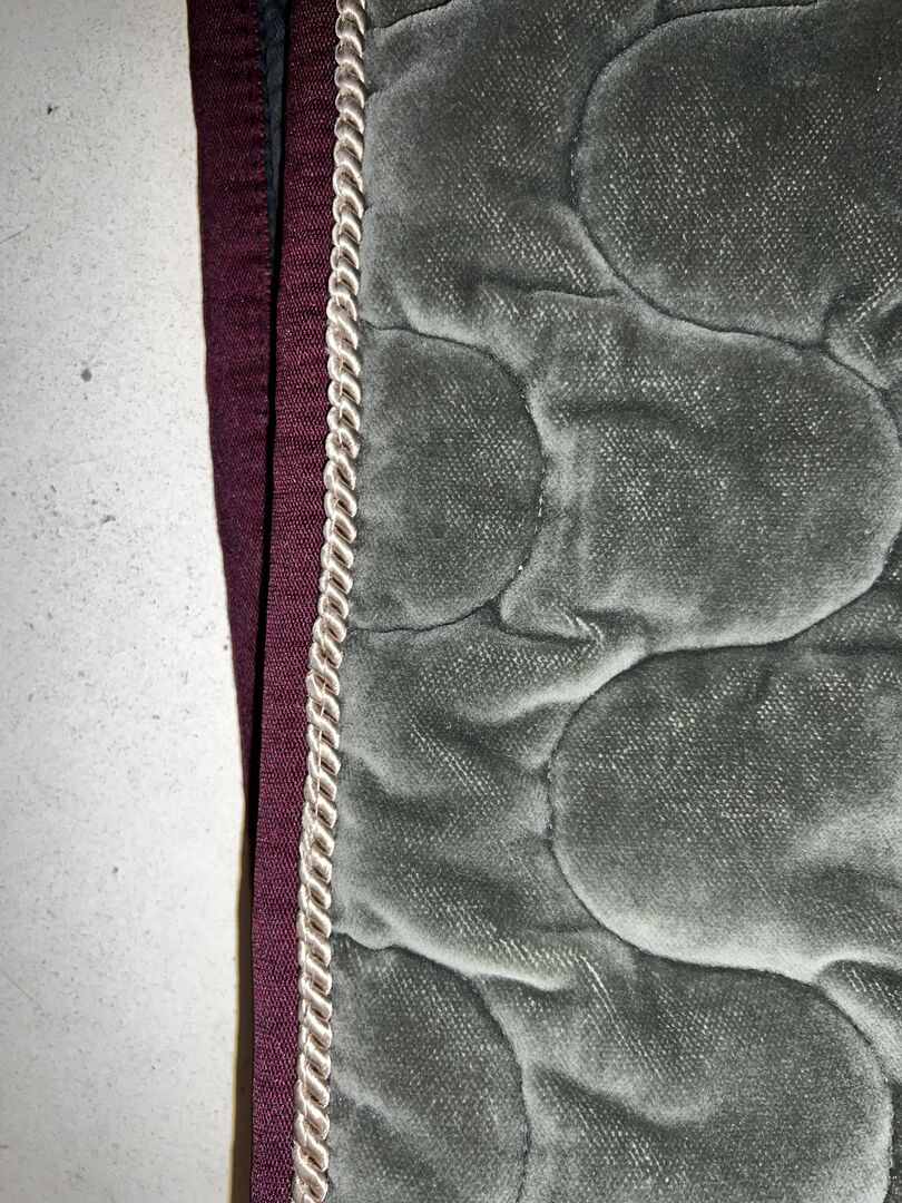 Jag säljer ett mörkgrått sammetssadelunderlag för dressyr. Den är i mycket gott skick och har knappt använts. Det ursprungliga priset är 35 euro. Jag säljer den för 15 euro plus fraktkostnader.