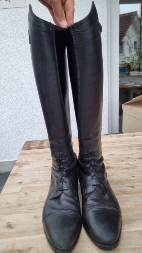 Ego7 ridstövel i läder Orion storlek 42 XS/0 mycket smalt skaft - Erbjuda välbevarade och väl underhållna Ego7 ridstövlar. Alla dragkedjor, tryckknappar och elastiska insatser fungerar perfekt! Stövelskaftet både utvändigt och invändigt är i mycket gott skick!