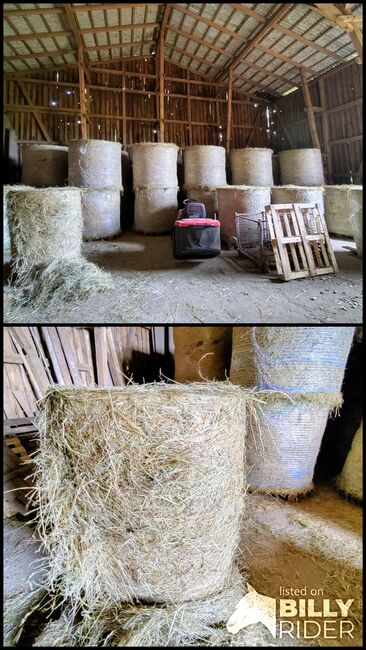 Ekologiskt hö i rundbalar, lagrat i lador, rik på struktur - Strukturrikt organiskt hö i rundbalar, ca 1,30 m, lagras torrt i ladugården, 100% JKK-fritt, som foder till egna hästar!